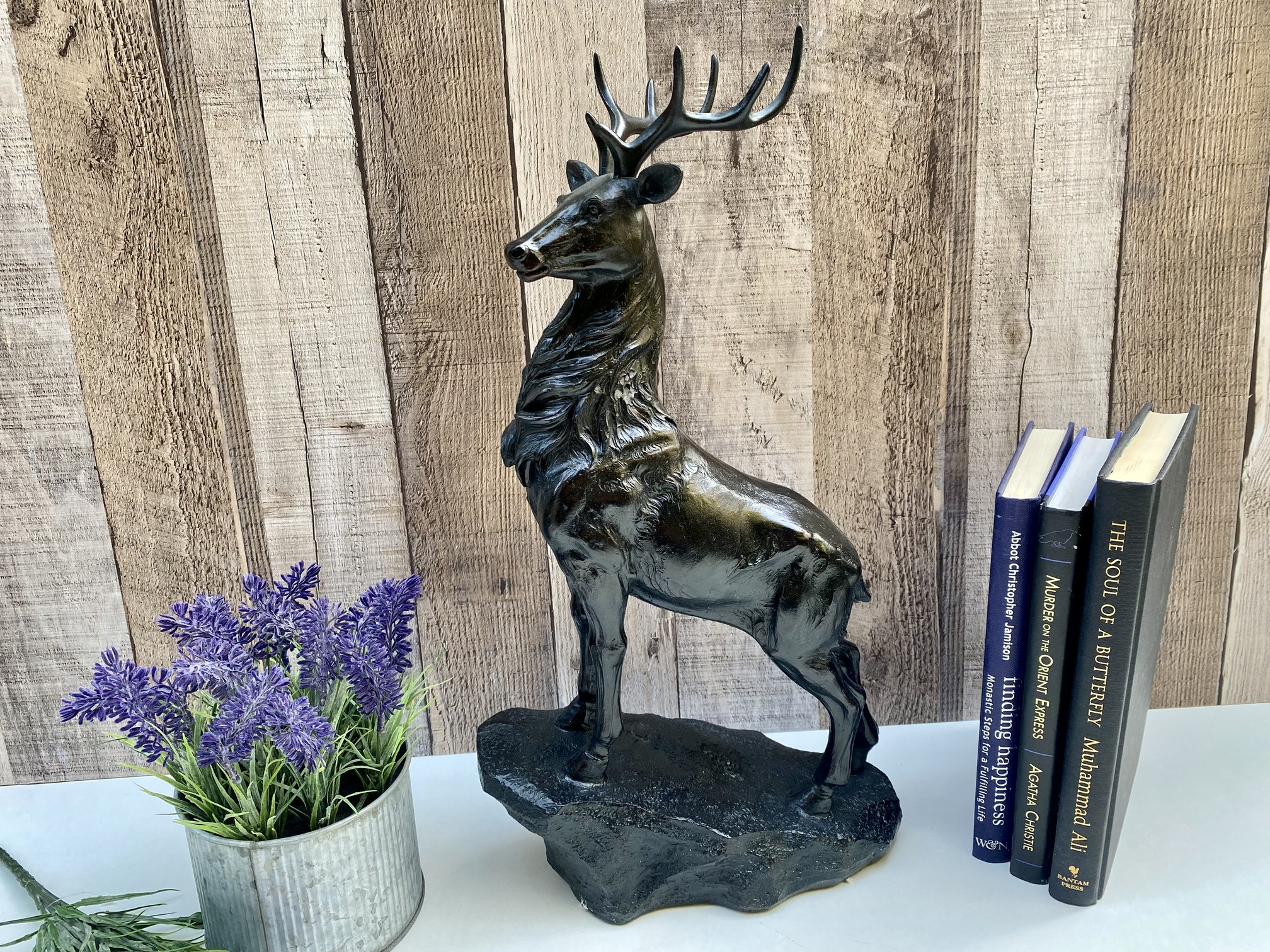 This is a stunning figurine of a majestic stag standing on a rock. He has been beautifully crafted f...