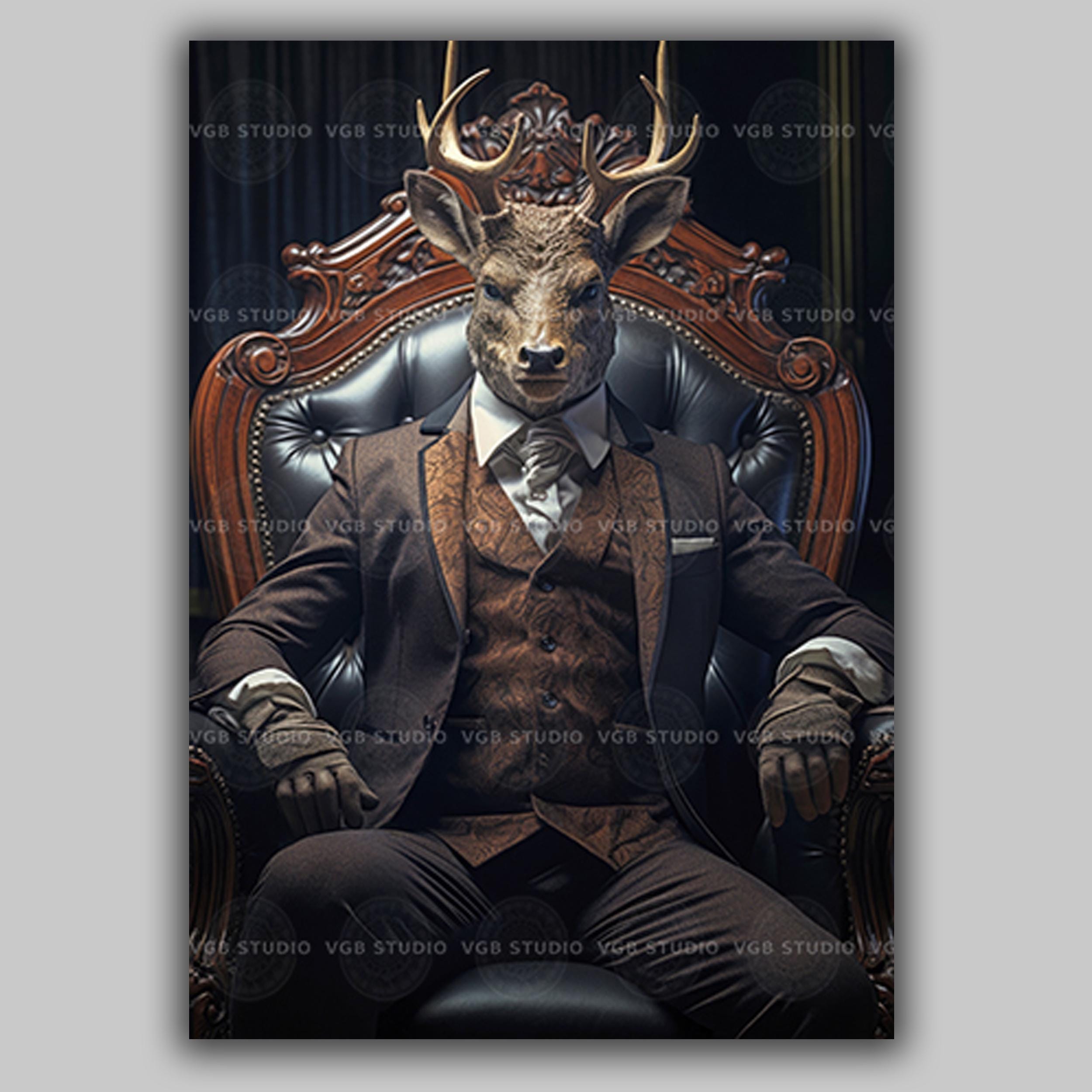"Exuding charisma and poise, this striking portrait transforms a stately stag into a true gentl...