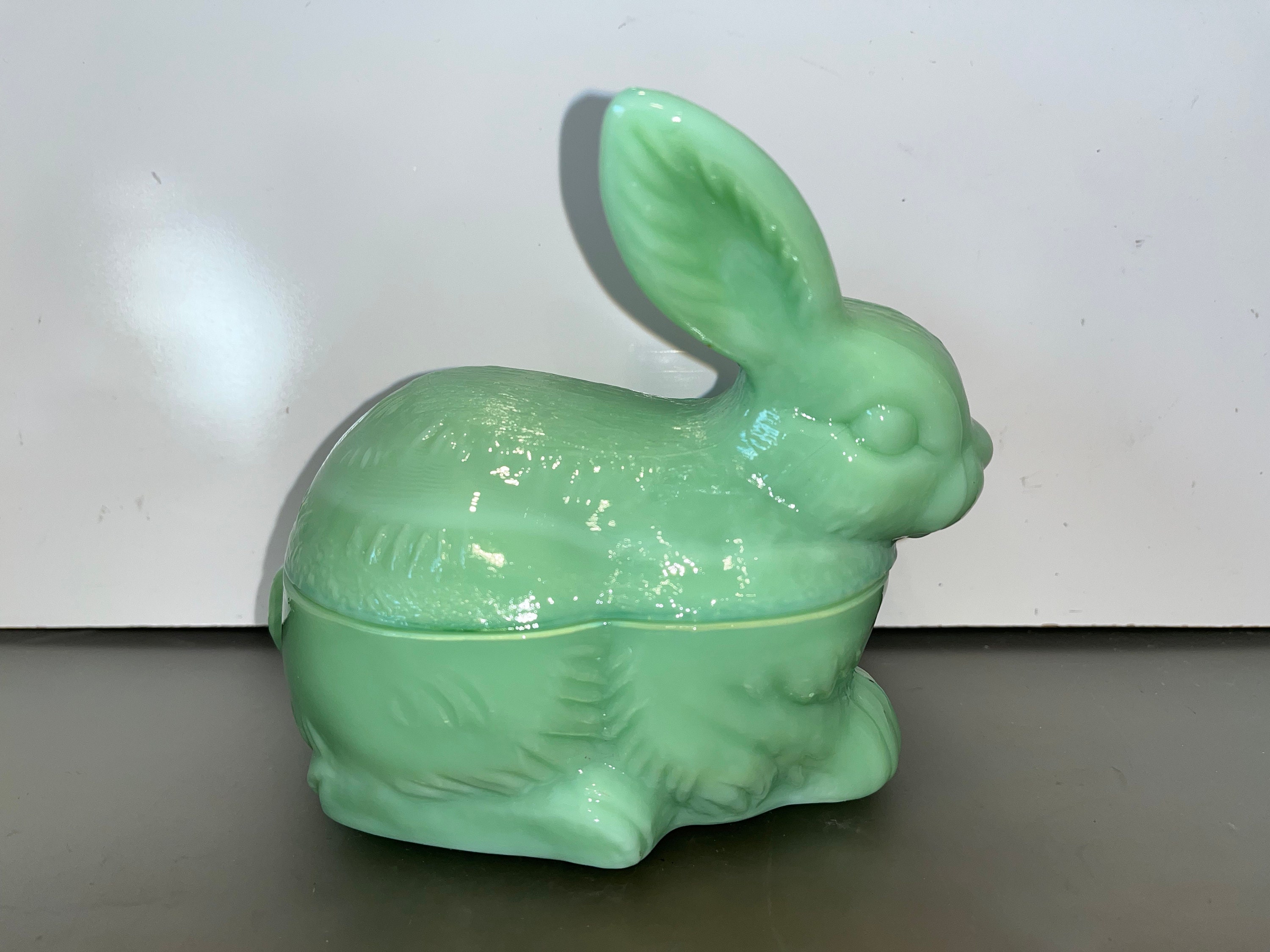 Vintage Jadeite Lidded Bunny, Vintage Green Glass 2 Part Bunny, Jad...