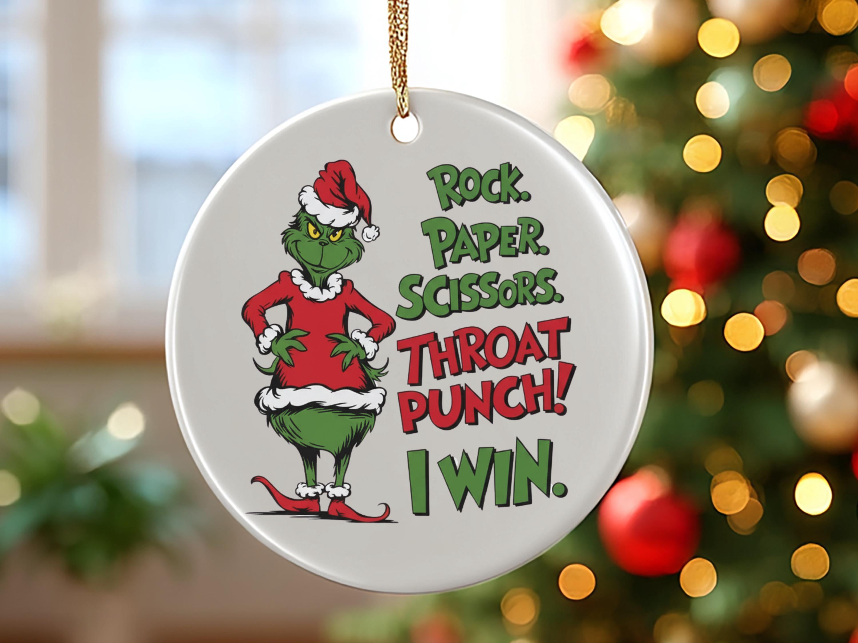 "Rock Paper Scissors Throat Punch Ornament, Christmas Tree Ornament, Grinch Ornament, Xmas Orna...