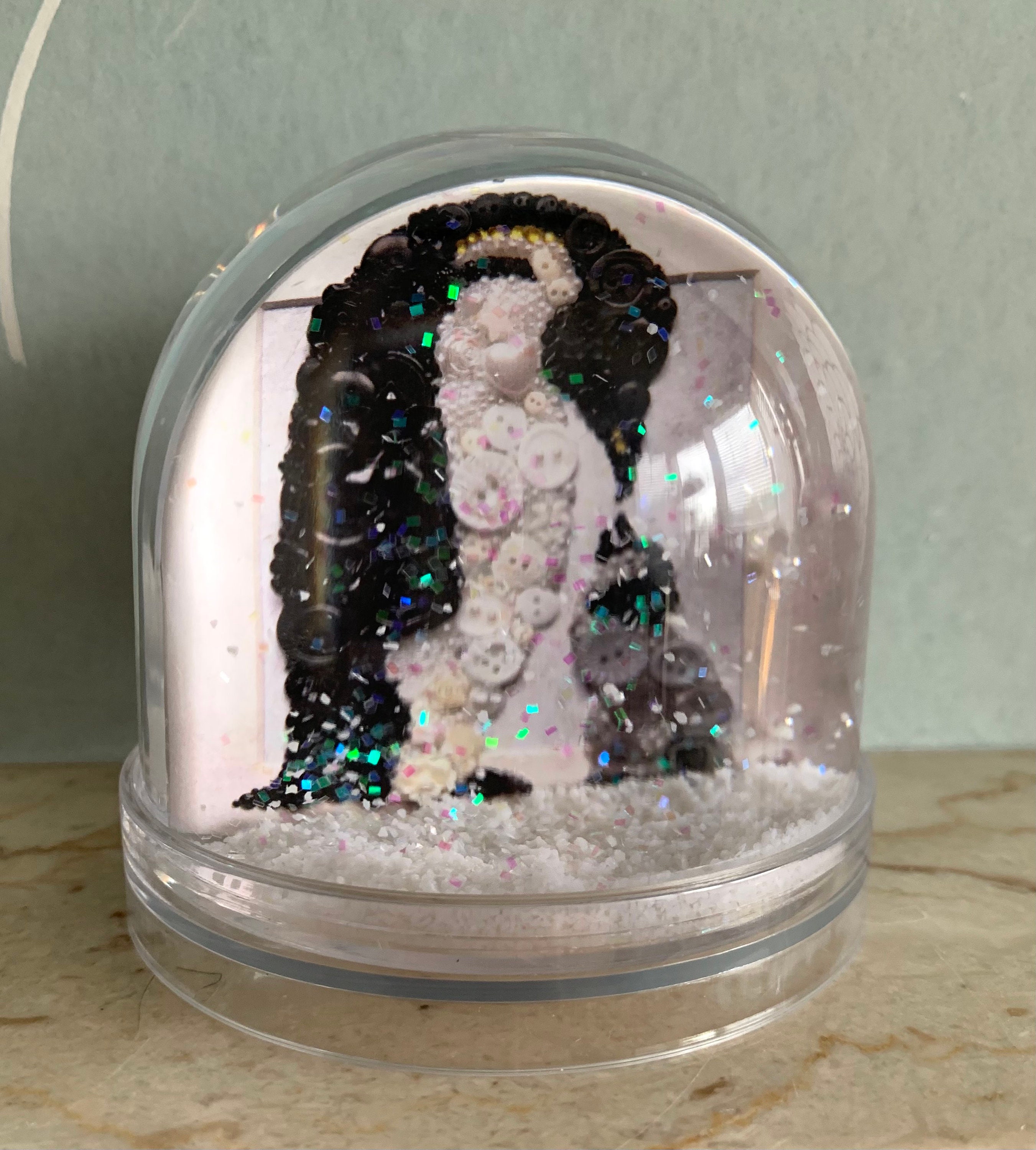 "This snow globe - a small world of harmony and goodness. Made of glass, with Swarovski crystal...