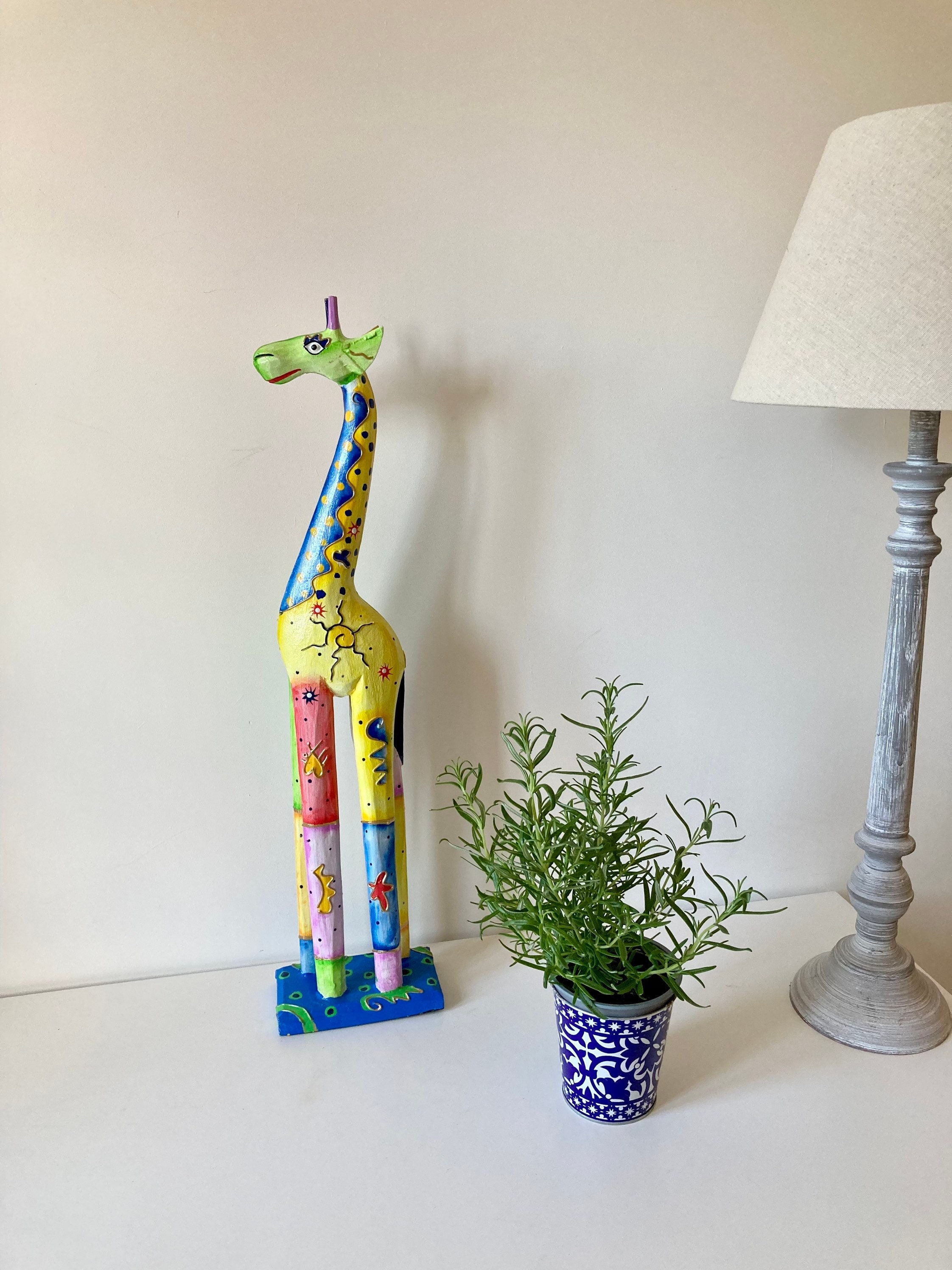 Wooden Giraffe Ornament Statue - Multi-coloured Giraffe - Hand-carv...