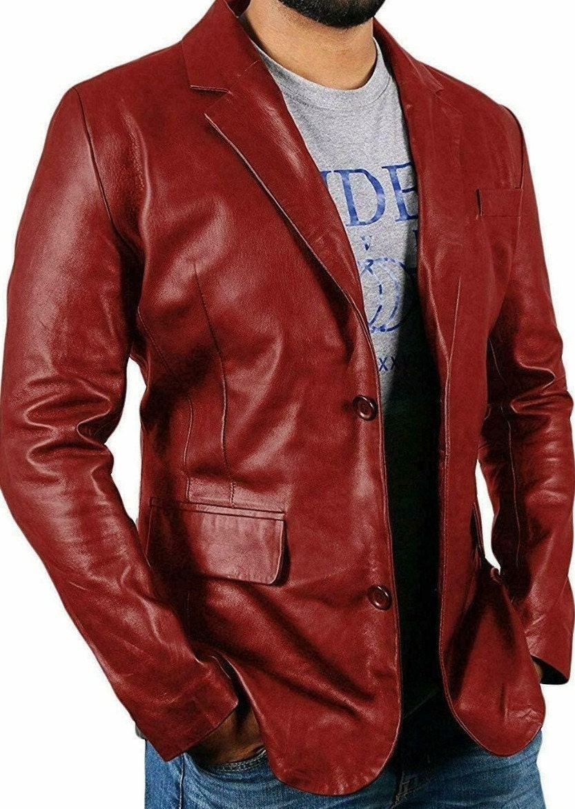 Lambskin RED Real Leather BLAZER , Formal Style Leather Blazer, But...