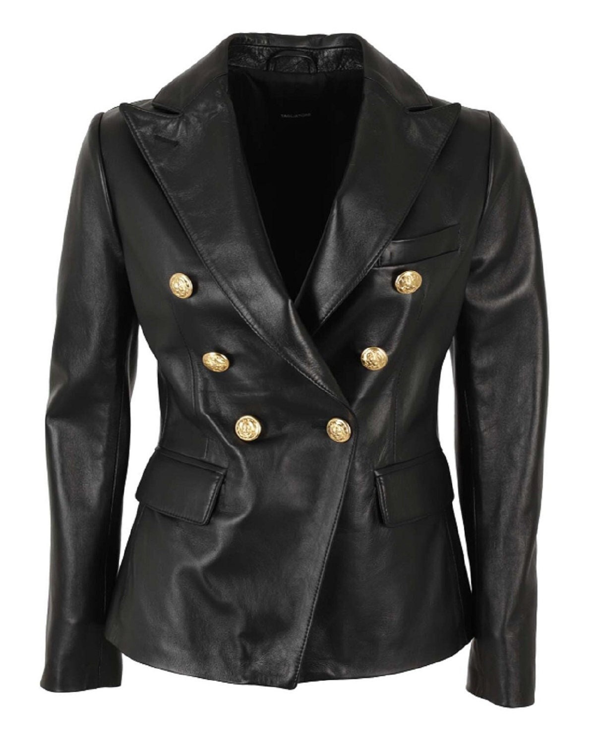 Womens Black Leather BLAZER Designer Double Breasted Blazer, Fancy ...