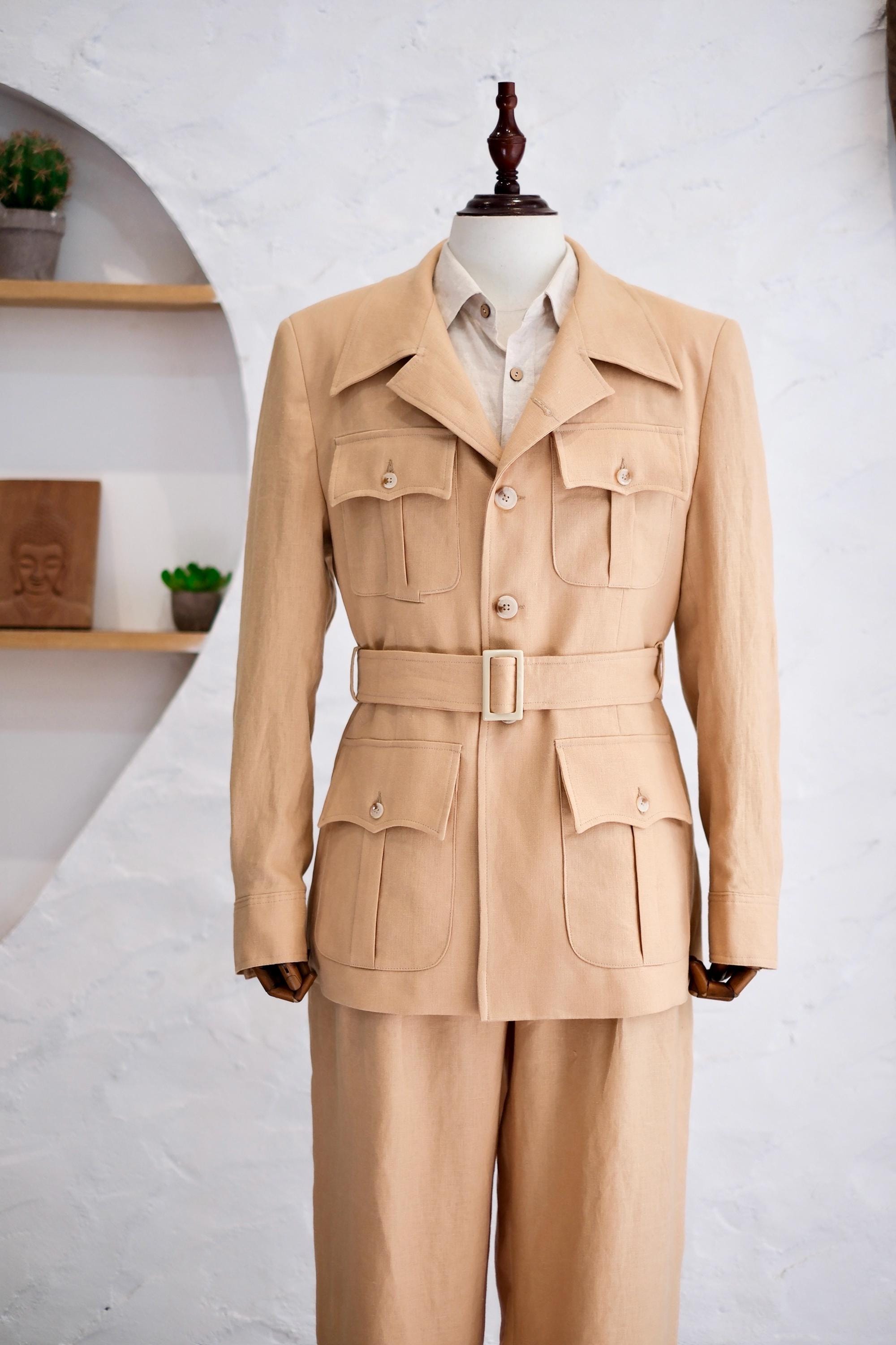 Handmade Linen Safari Jacket Linen Suit Men Custom Linen Jacket Men...
