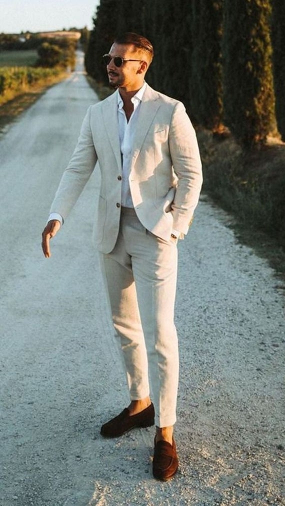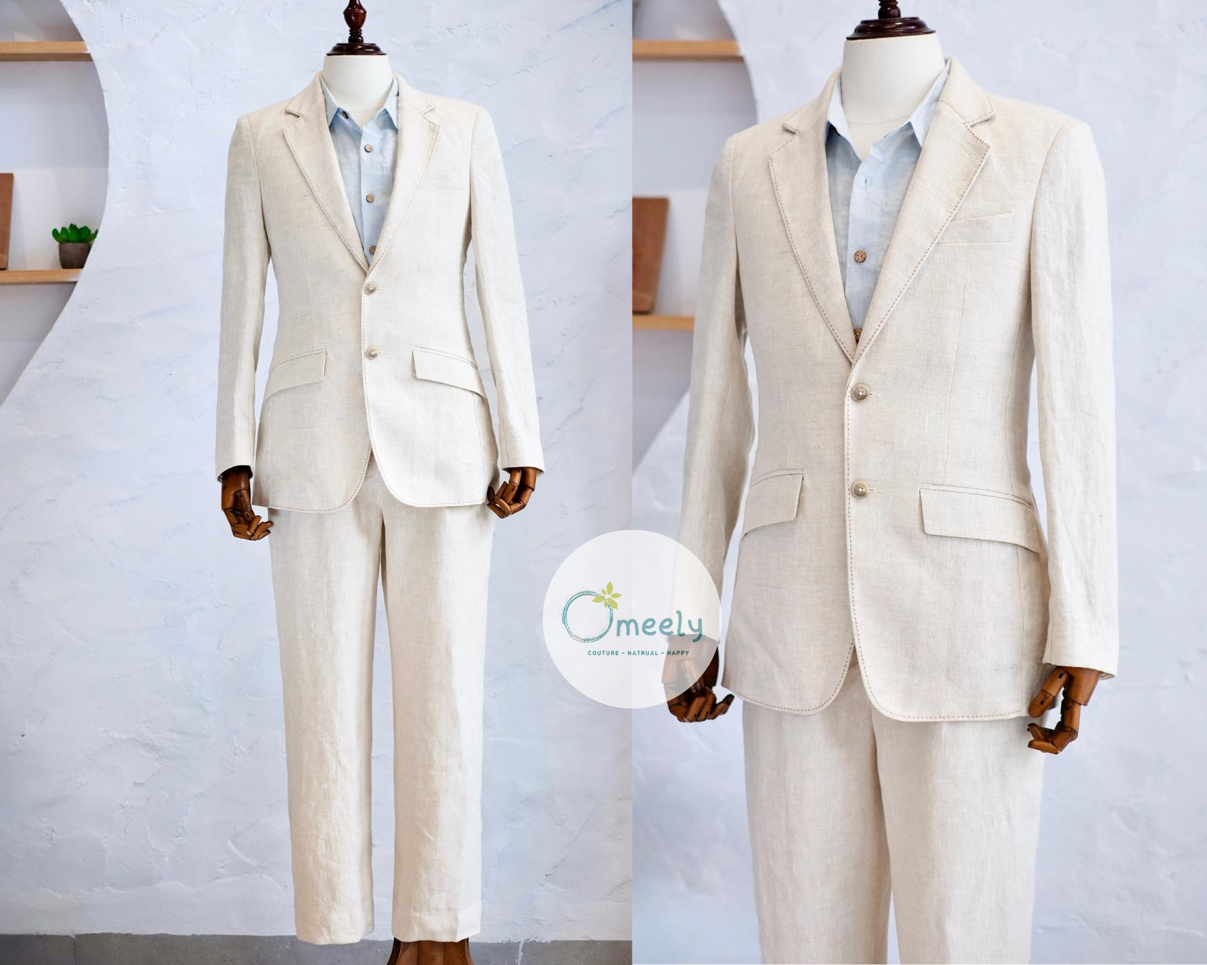 Linen Wedding Suit Men Handmade Linen Suit Men Linen Blazer Men Cre...