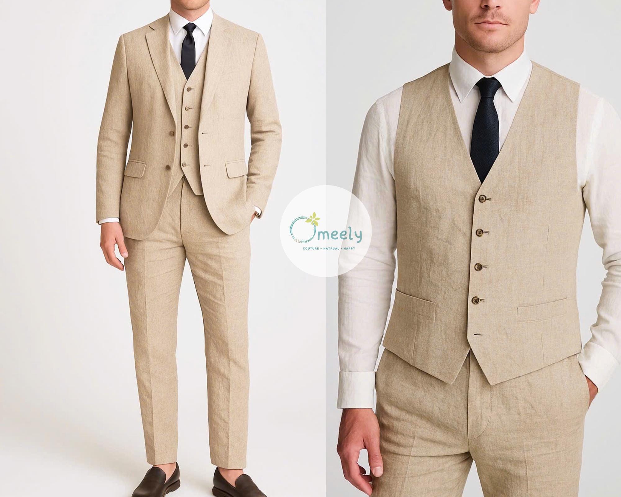 Handmade Linen Suit Men Linen Waistcoat Men Custom Linen Jacket Men...