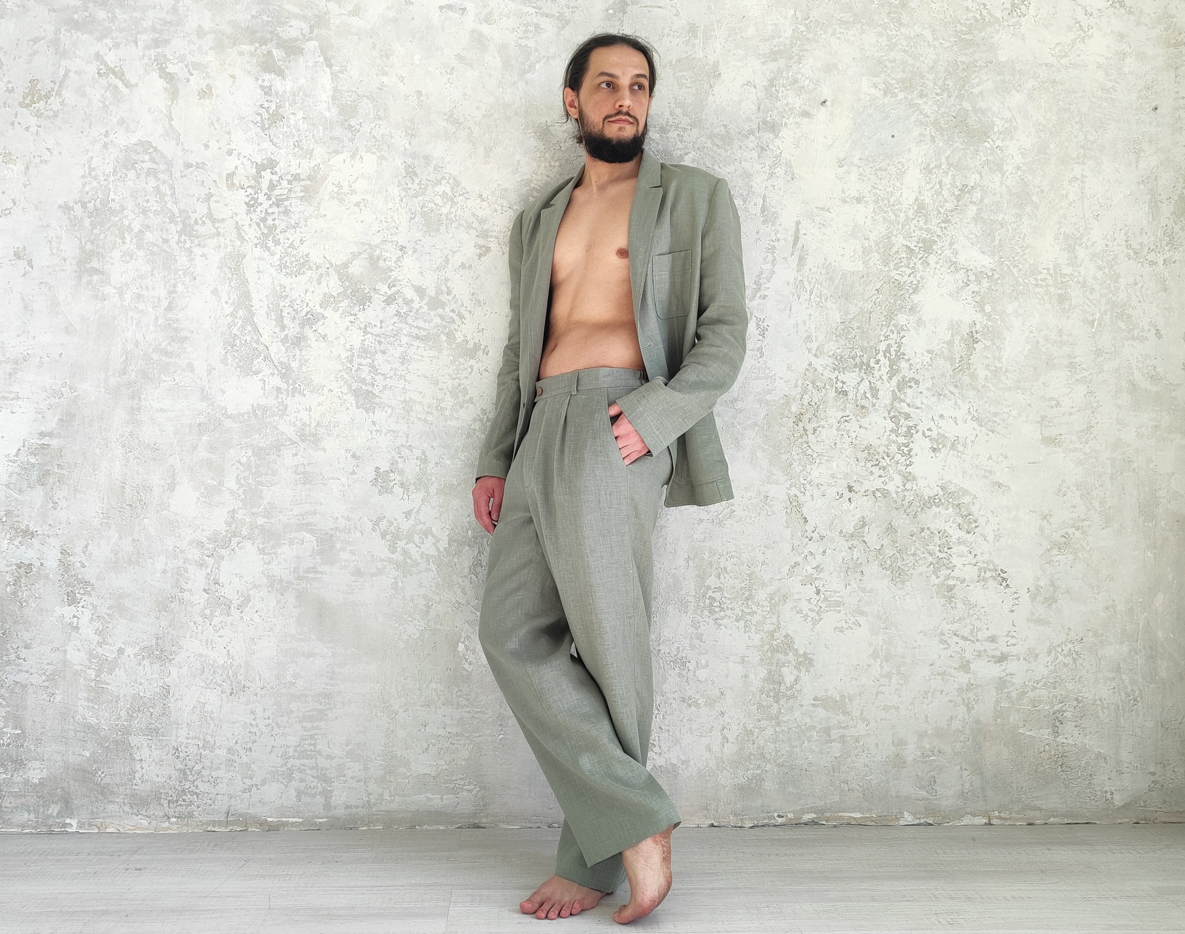 "Regular Linen Suit for Men with no lining Handmaded by Aliona Mitko Offered in medium weight w...