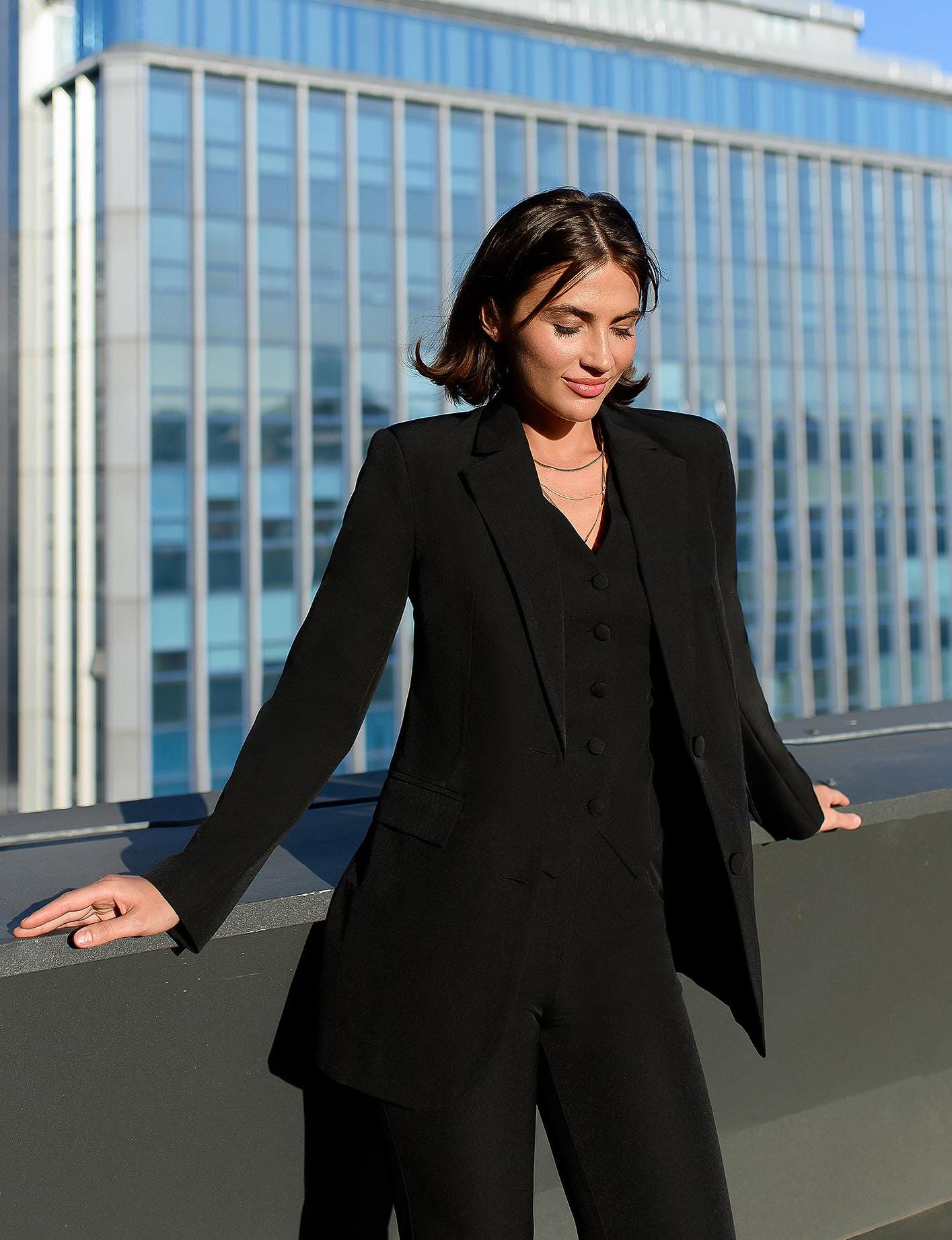 Elegant Black Three-Piece Suit with Vest, Women's Suit Set, Classic...