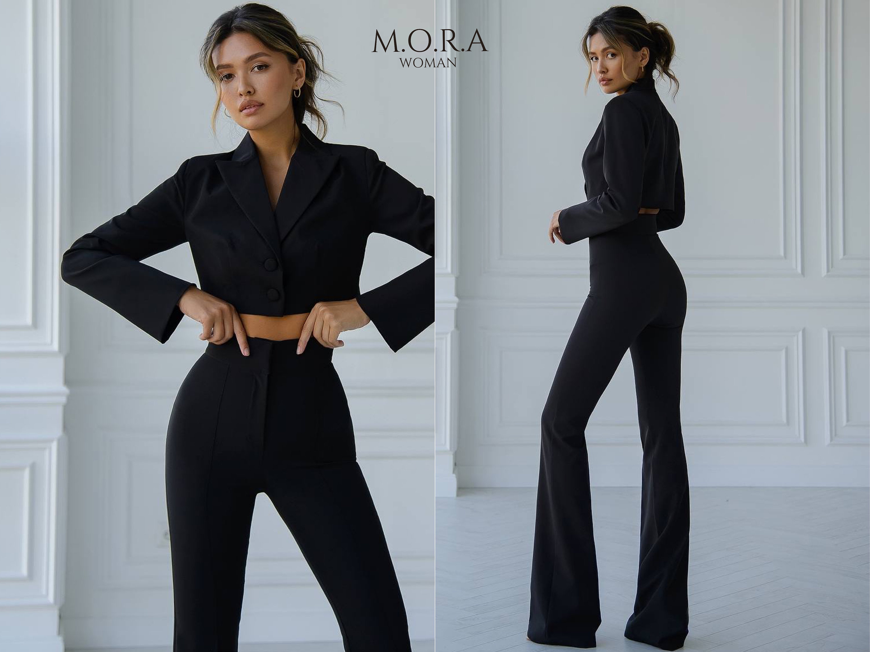 Black Suits for Women, Cropped Jacket Suit Pants. Flare Pant Suit, ...