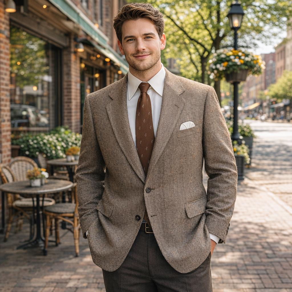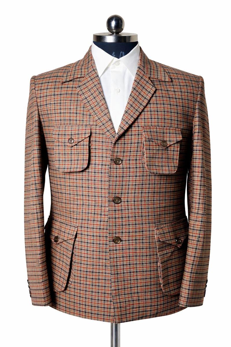 Men's Brown Tweed Safari Jacket | Checked Wool Blend Blazer | Handm...