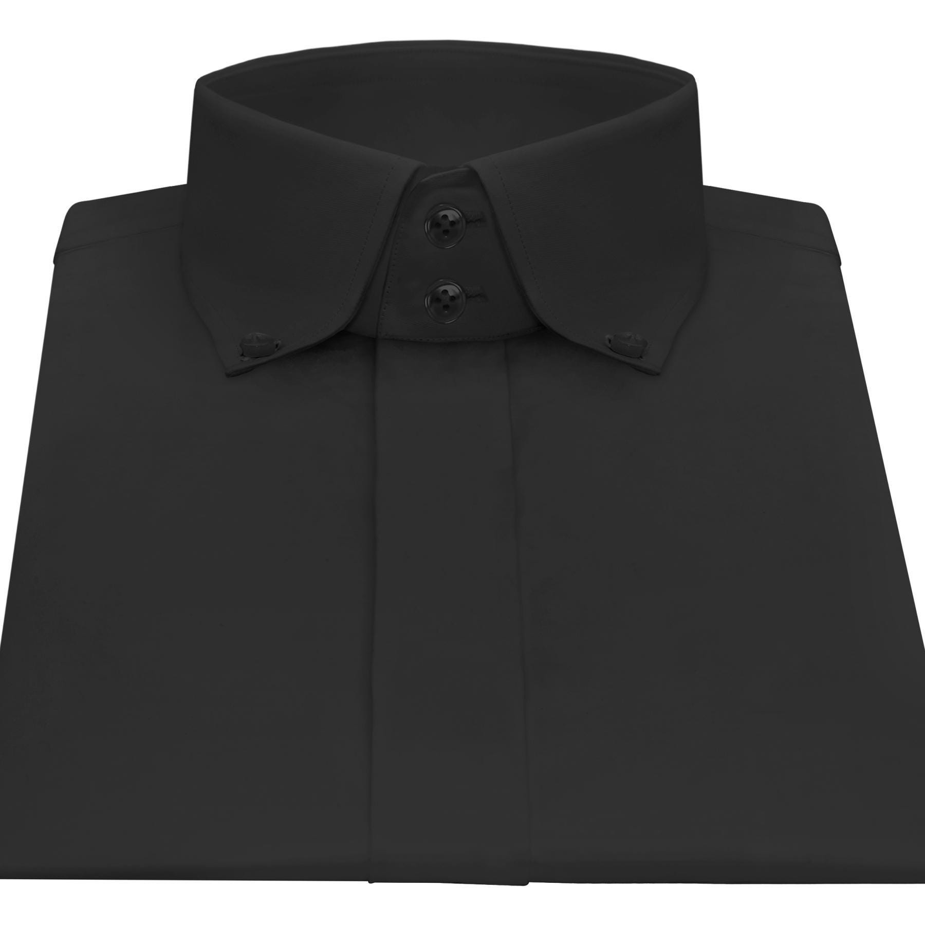 "Men's Black High Button-Down 2 Button Collar Hidden Placket Dress Shirt Polo / Tie / Pointy / ...