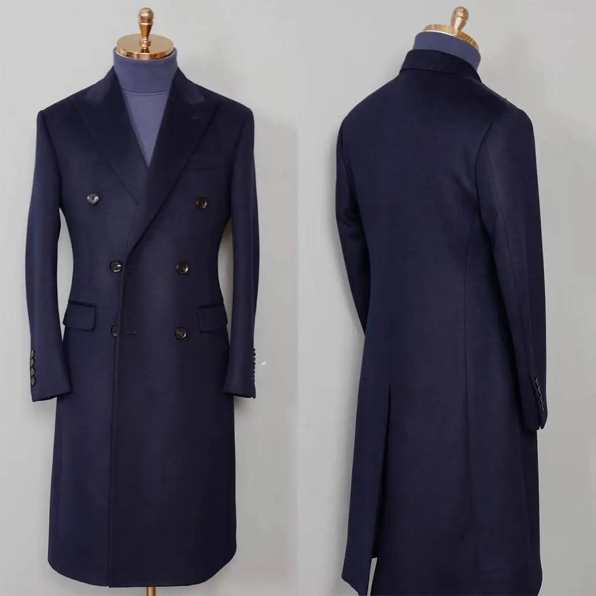 Navy Cashmere Men Suit Blazer Long Overcoats Jacket Coat For Business Man Winter Woolen Thick Tuxedo...