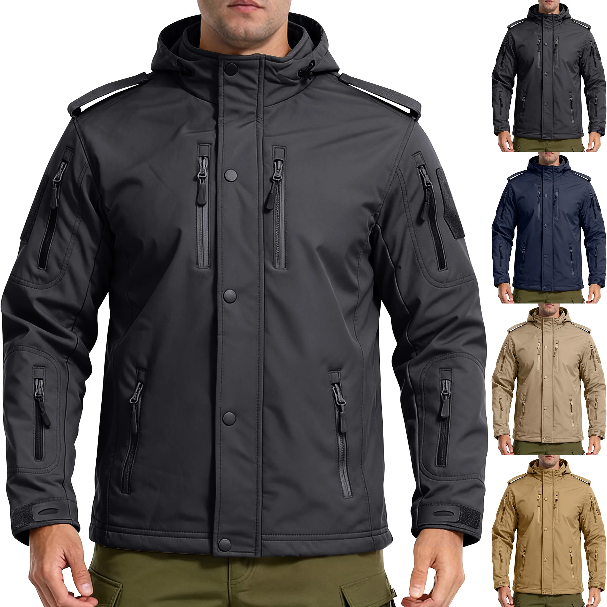 Trendy Solid Color Assault Suit Breathable Windproof Jacket Men'S Winter Warm Jacket Outdoor Sports ...