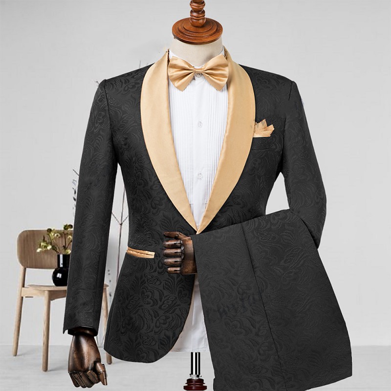 Men's Wedding Winter Wedding Suits Shawl Lapel Shawl Collar Black C...