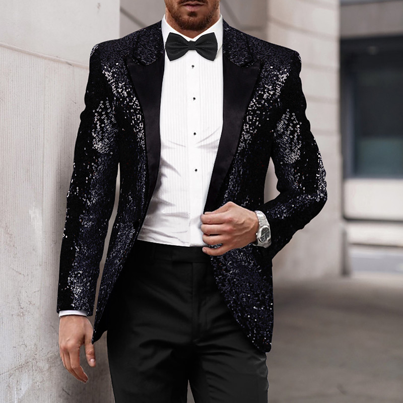 Men's Party Sequin Blazer 70s Disco Retro Casual Jacket Regular Sol...