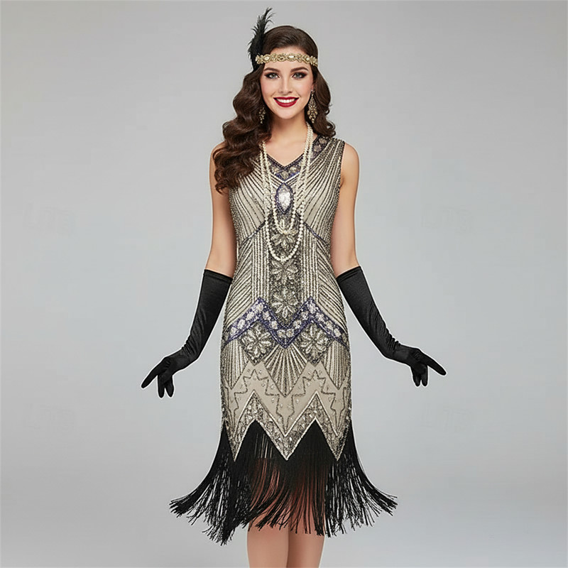 Set Roaring 20s Vintage Inspired The Great Gatsby Knee Length Short...