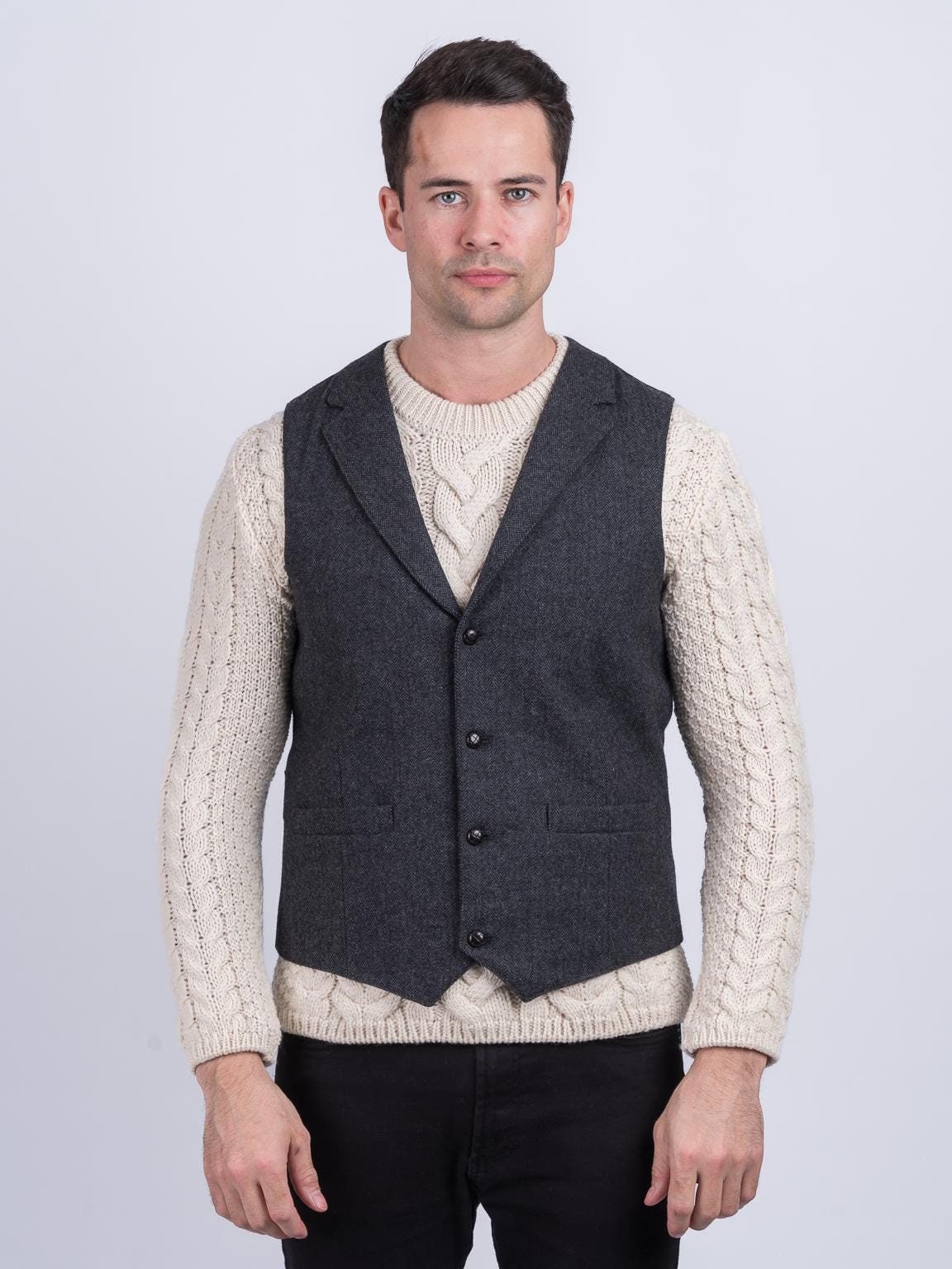 Celtic Tweed | Behan Grey Tweed Waistcoat with Revere | Men's Herri...