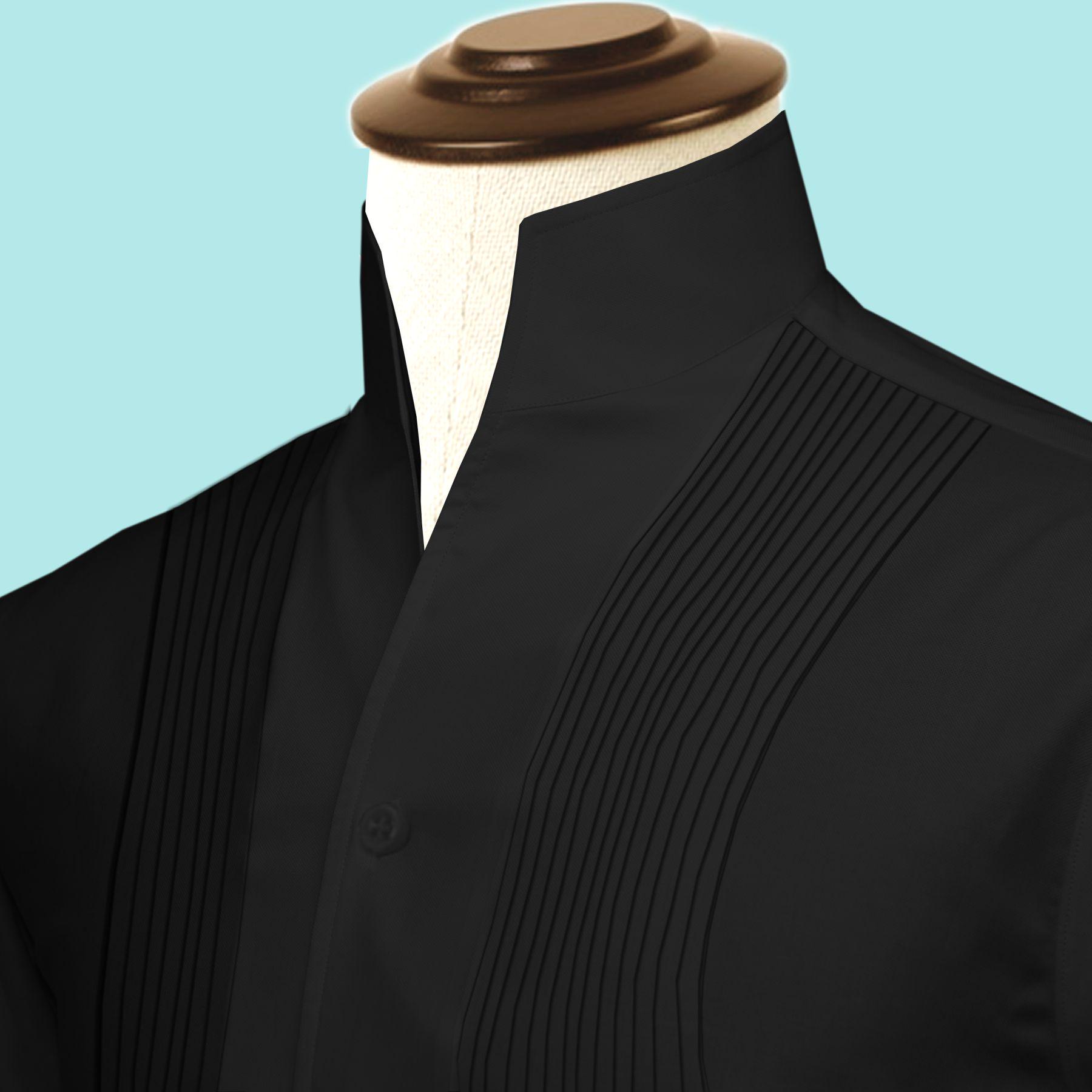 Open High Neck Collar Black Men Shirt Tuxedo Placket V Mandarin Col...