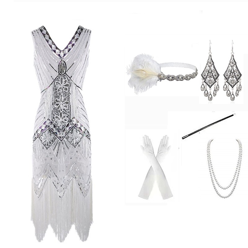 Set Roaring 20s Vintage Inspired The Great Gatsby Knee Length Short...