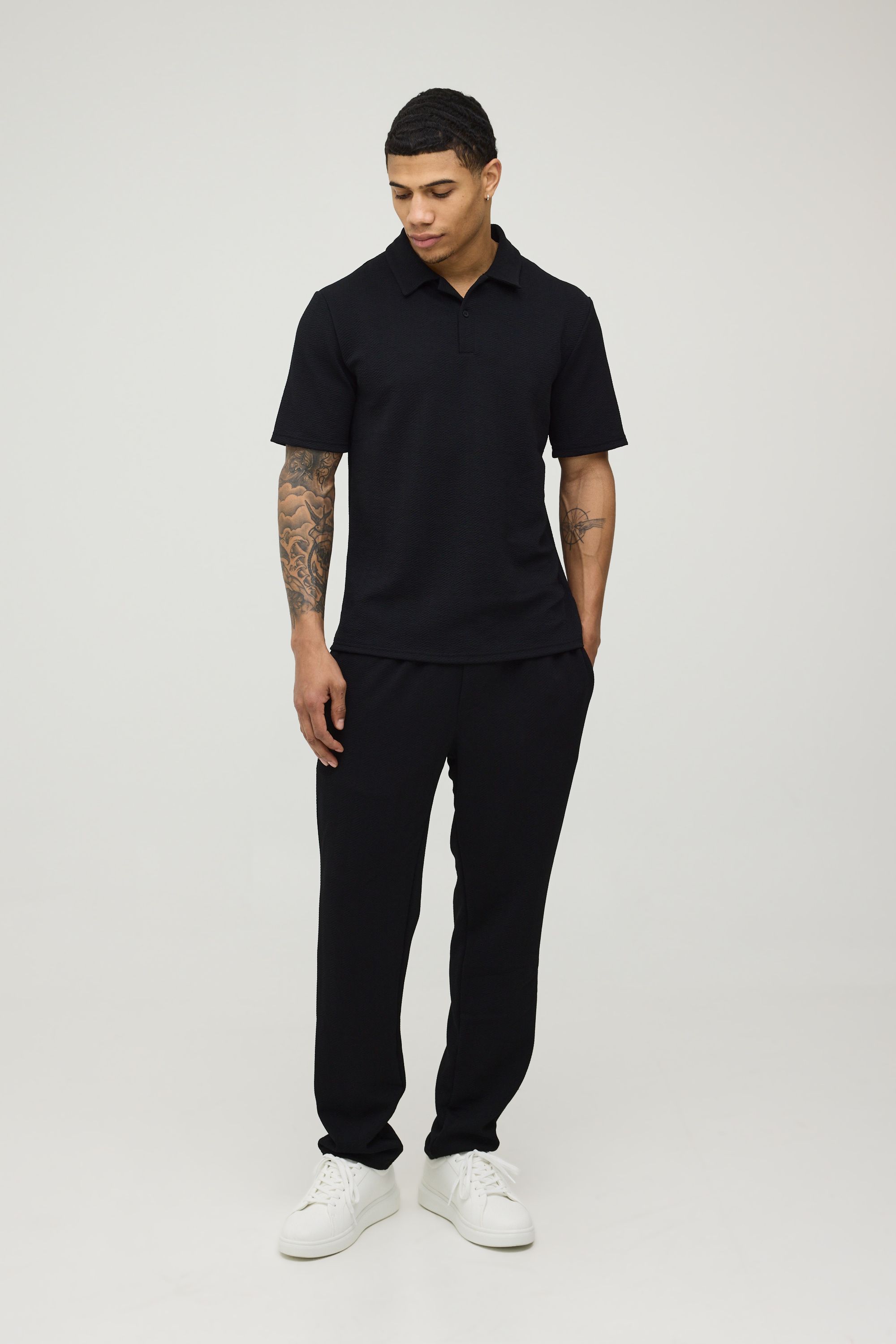 Short Sleeve Jersey Herringbone Polo Shirt & Tapered Trouser Set