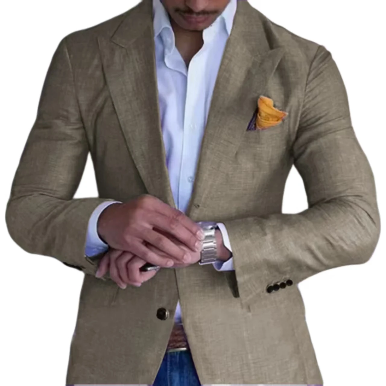 Men's single-button lapel linen jacket formal jacket with peak lape...