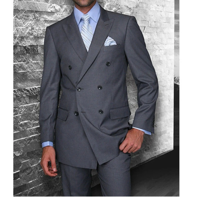 Dark Grey Wedding Suits for Men Double Breasted Slim Fit Men Suits ...