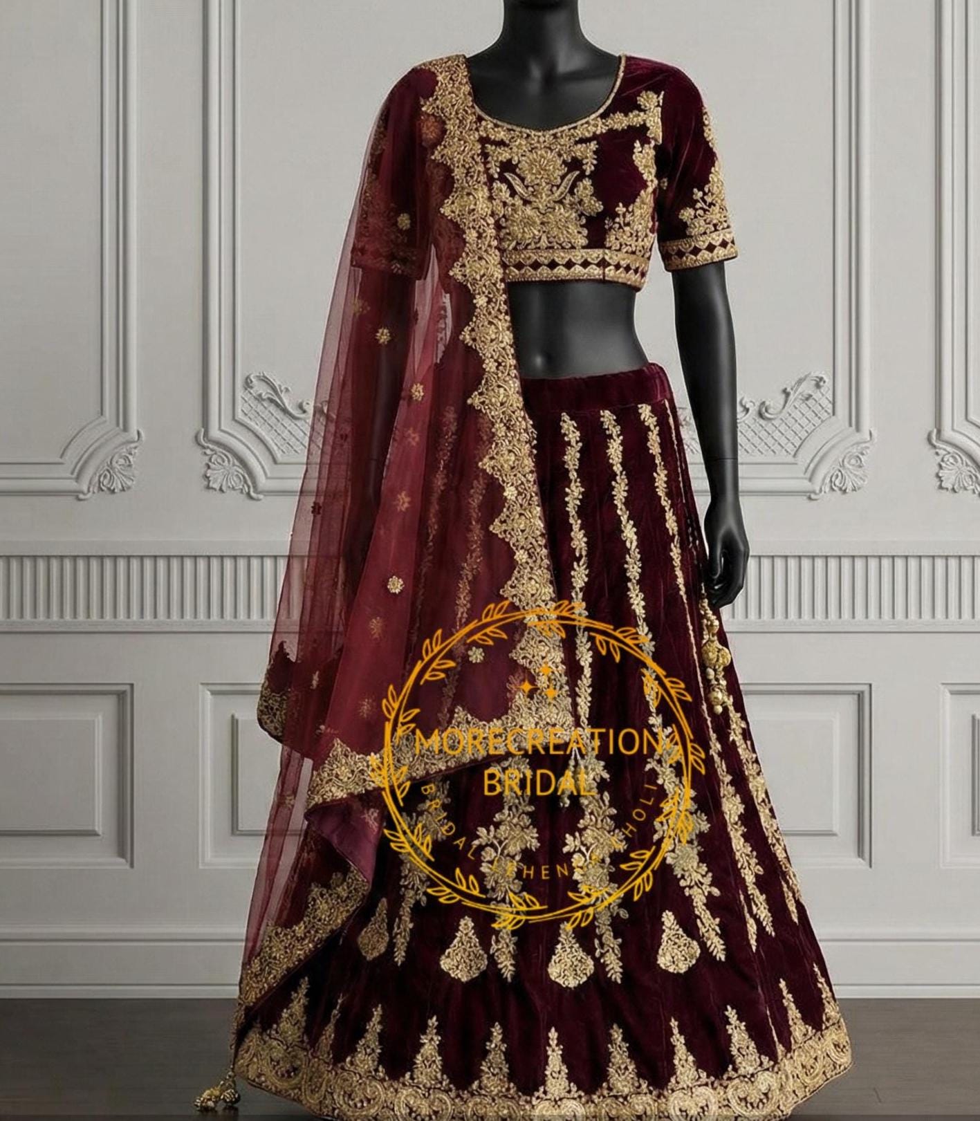* LEHENGA : Pure 9000 Velvette with Heavy CODING Embriodery Work & zari work, with Grand GOLDEN ...
