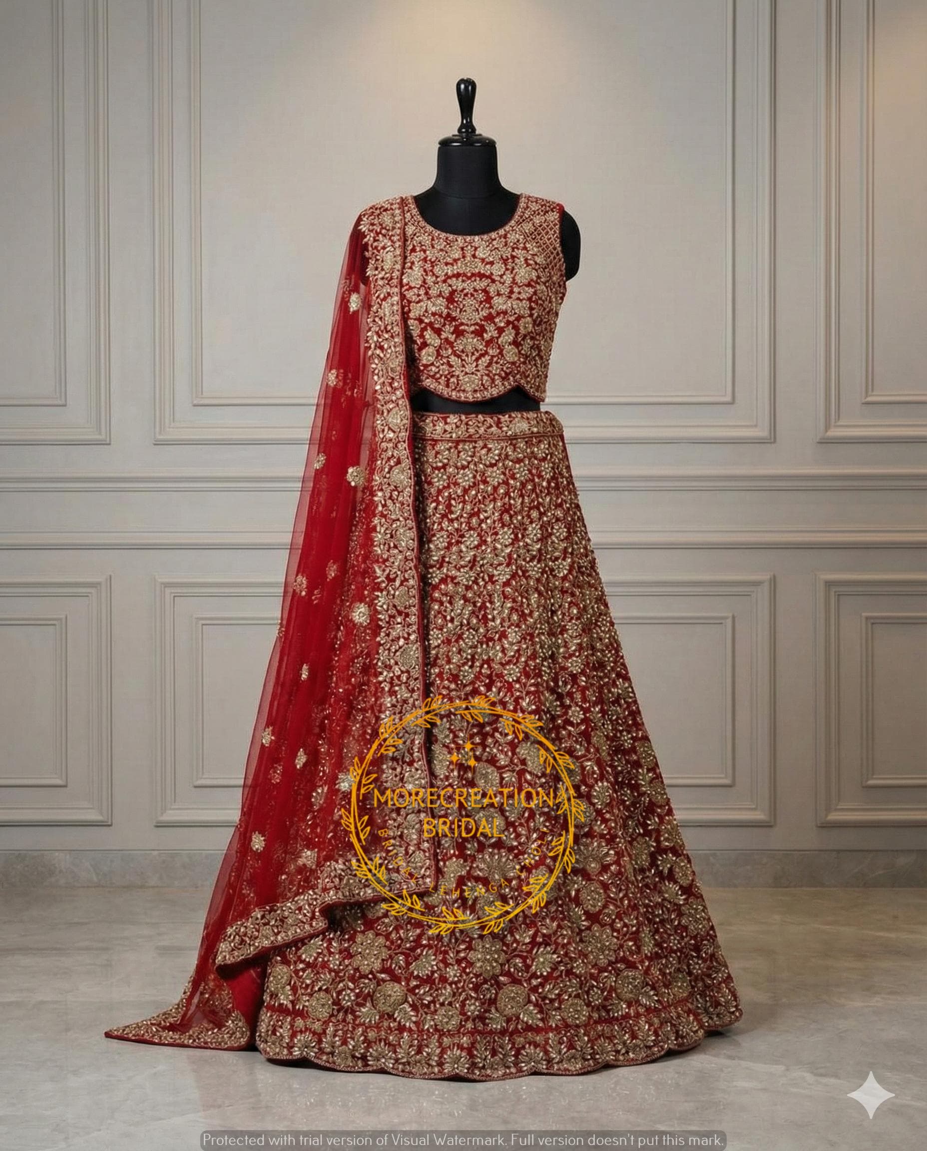 * LEHENGA : Pure 9000 Velvette with Heavy Embriodery Work, with golden Diamond stone work& Golde...