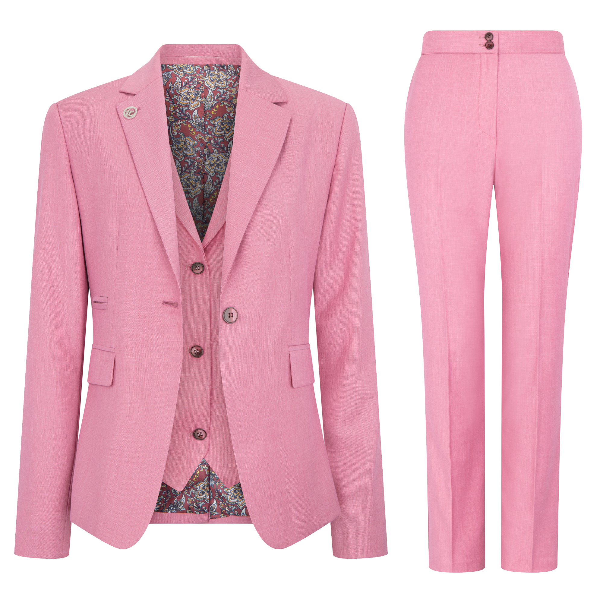 TruClothing Womens 3 Piece Tailored Fit Plain Pink Formal Office Su...