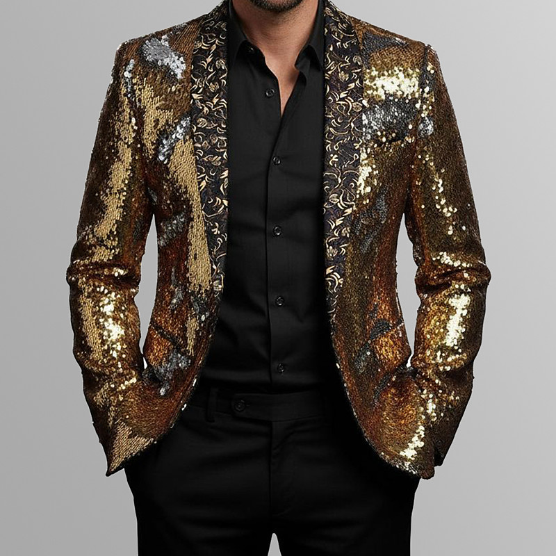Men's Blazer Jacket Shawl Collar Party Pattern Blazer Gold Slim Fit...