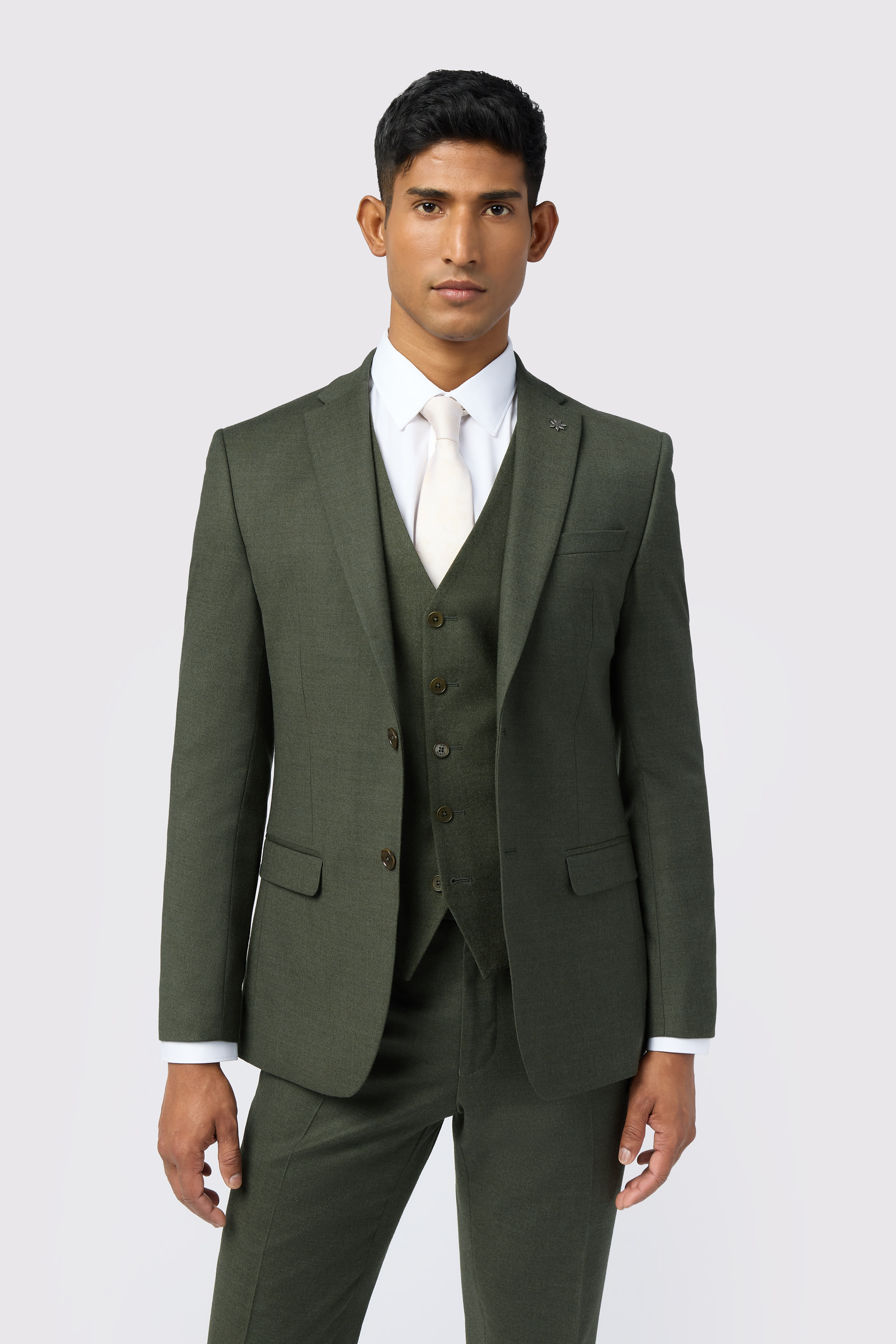 The Lear olive green flannel suit jacket features a rich wool-blend with a hint of stretch for natur...