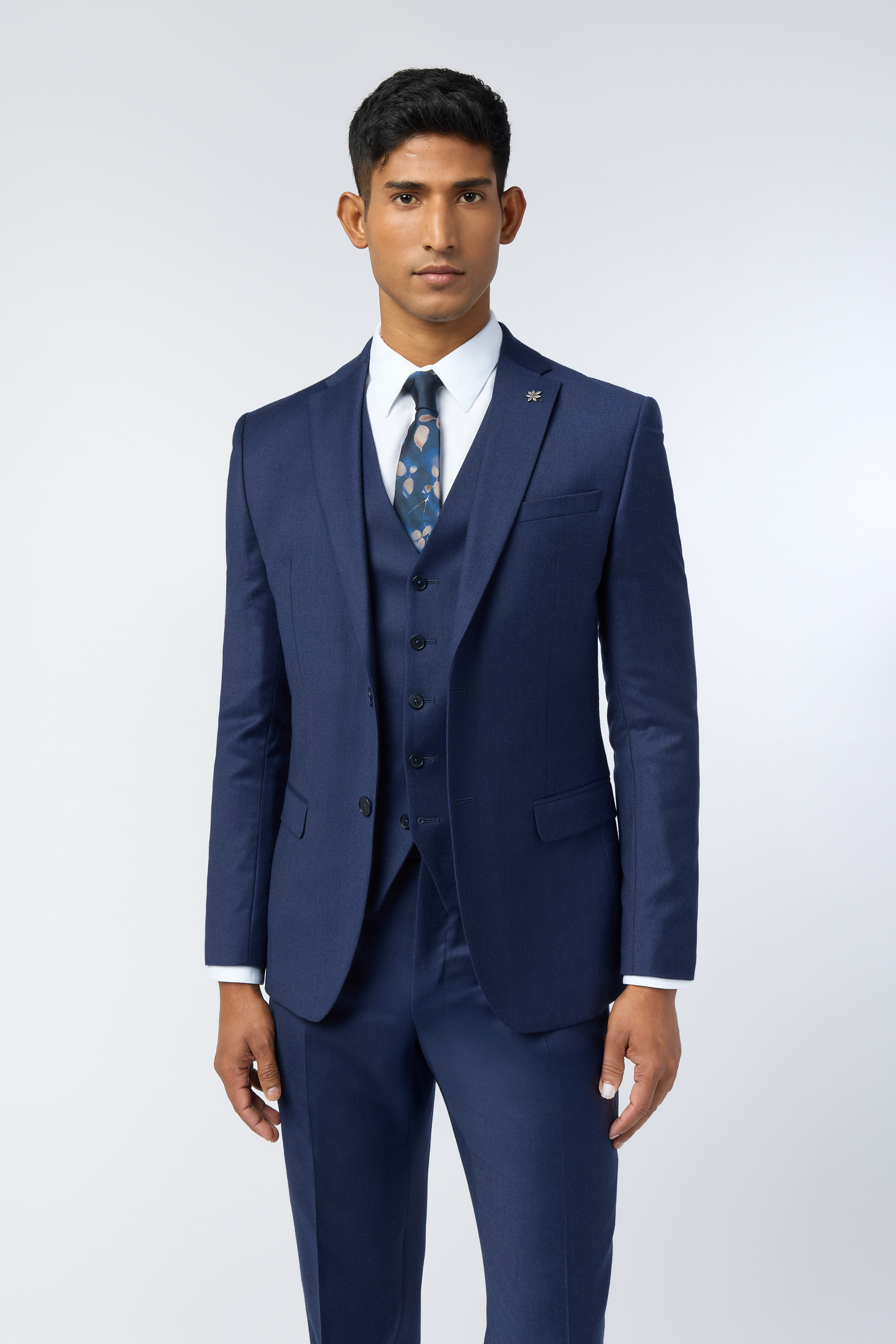 The Keats cobalt blue flannel suit jacket features a rich wool-blend with a hint of stretch for natu...