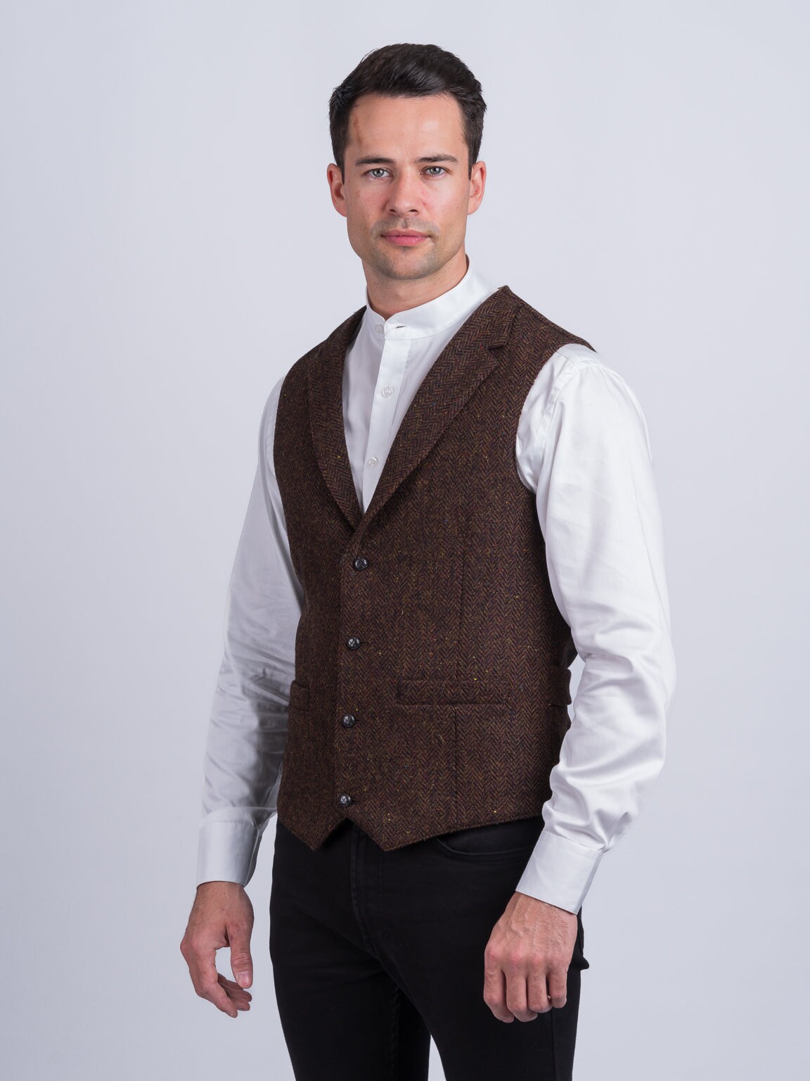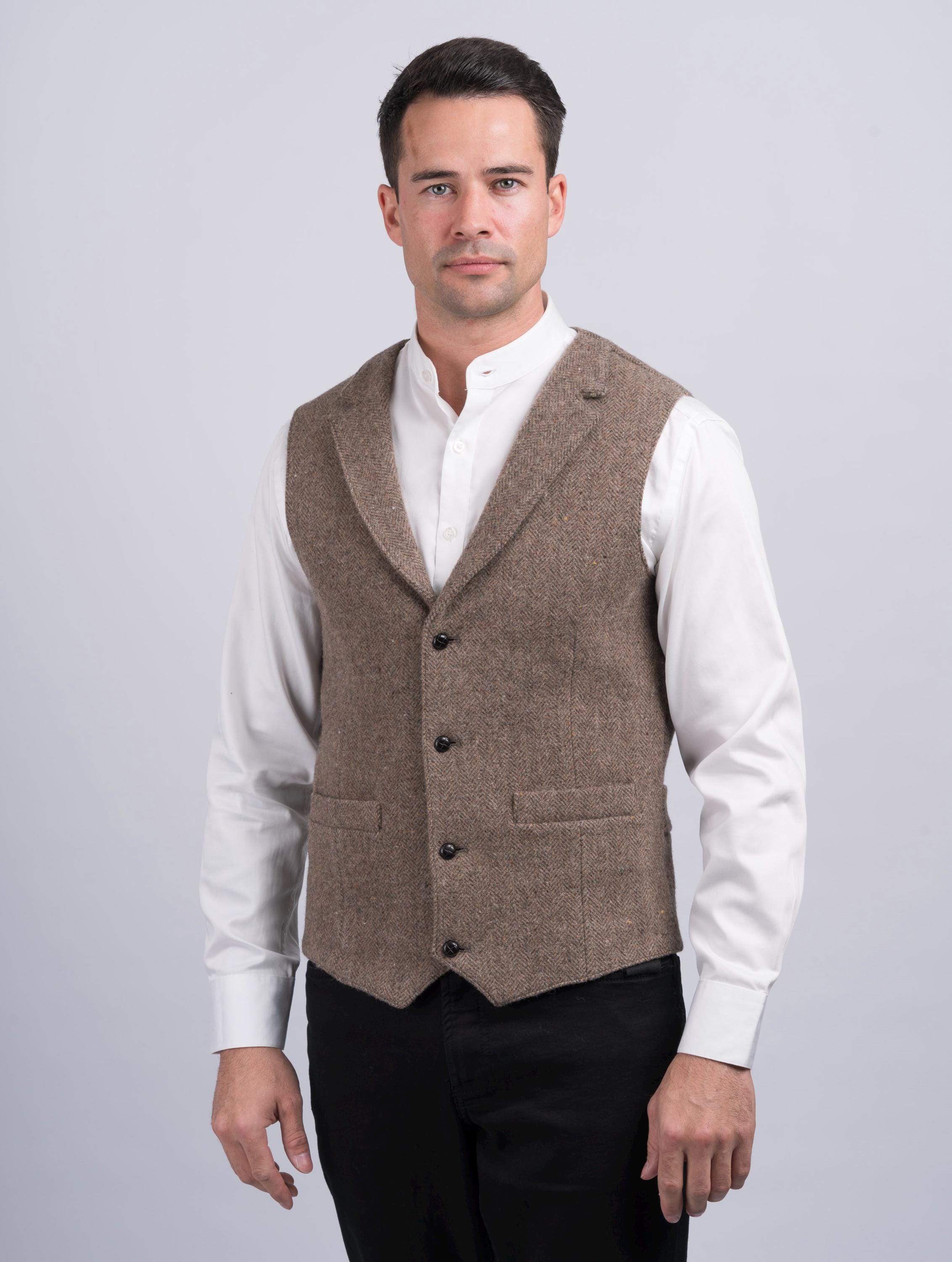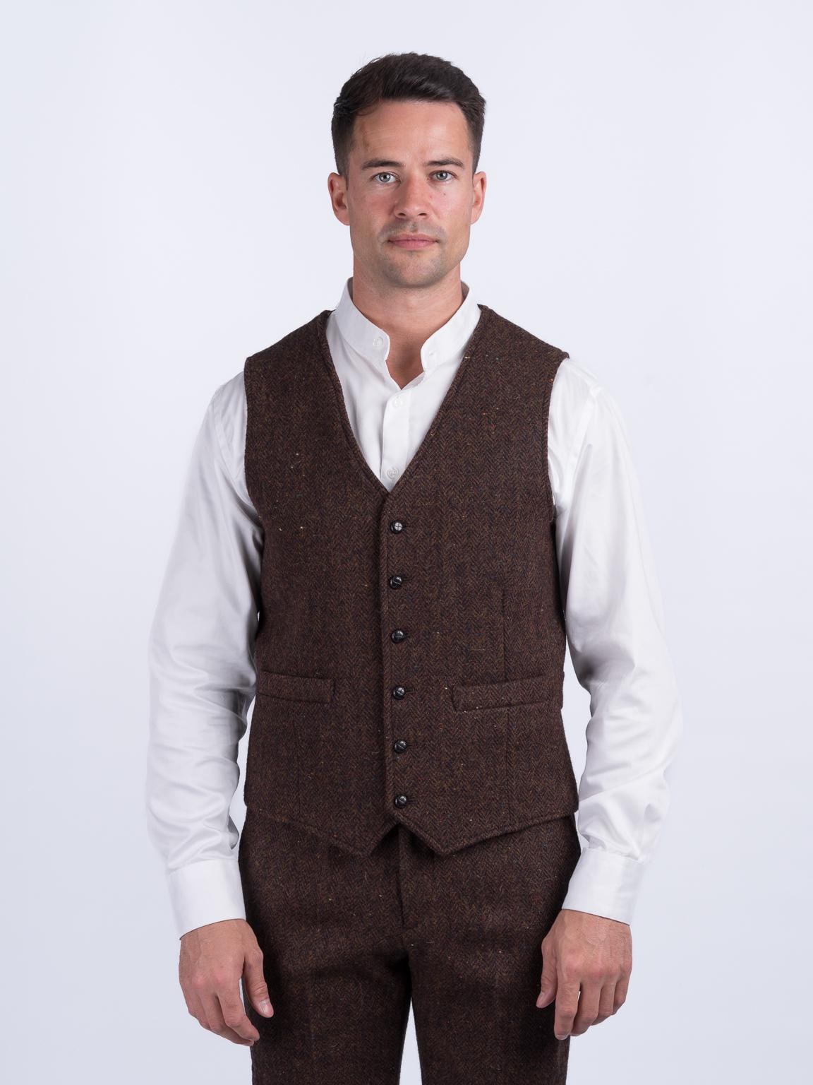 Celtic Tweed| O'Brien Brown Herringbone Waistcoat| Men's Tweed Vest...