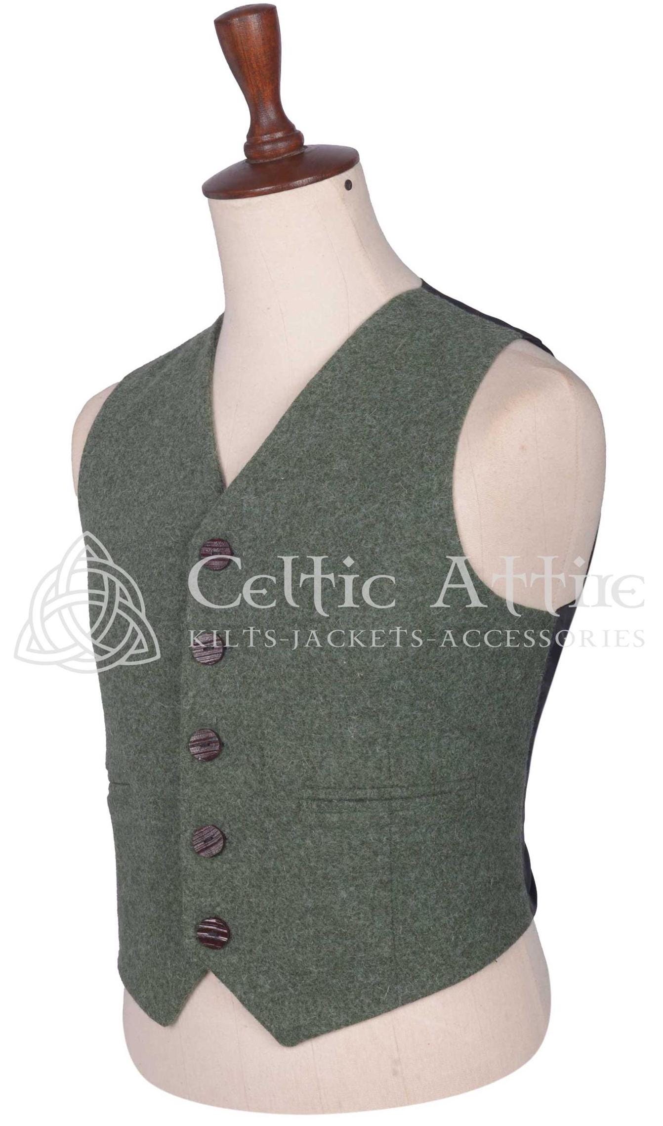 Green Lovat Wool Vest - Scottish Tweed Waistcoat - 5 Buttons Argyll...