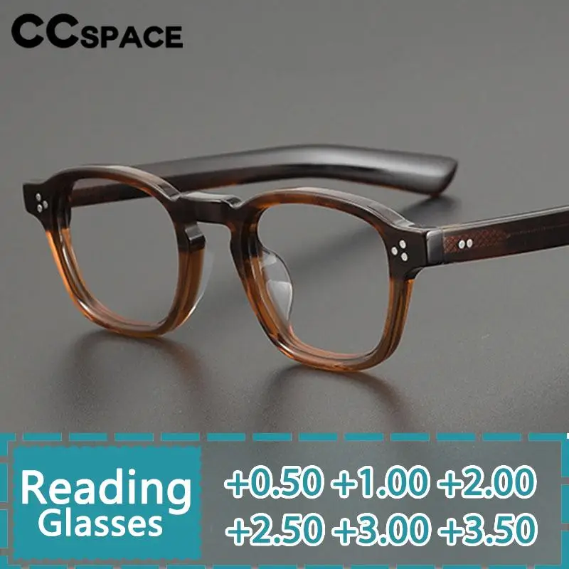 Retro Acetate Reading Glasses Fashion Square Rivet Resin Optical Presbyopic Spectacles Custom Diopte...