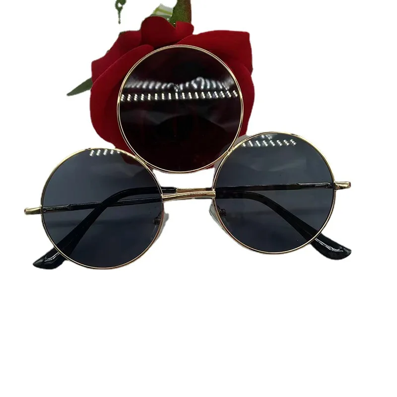 Round oval sunglasses man woman black metal frame mirror silver len...