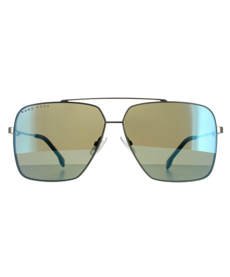 Hugo Boss Round Mens Ruthenium Havana Kaki Blue Mirror BOSS 1325/S Sunglasses are a fashionable roun...
