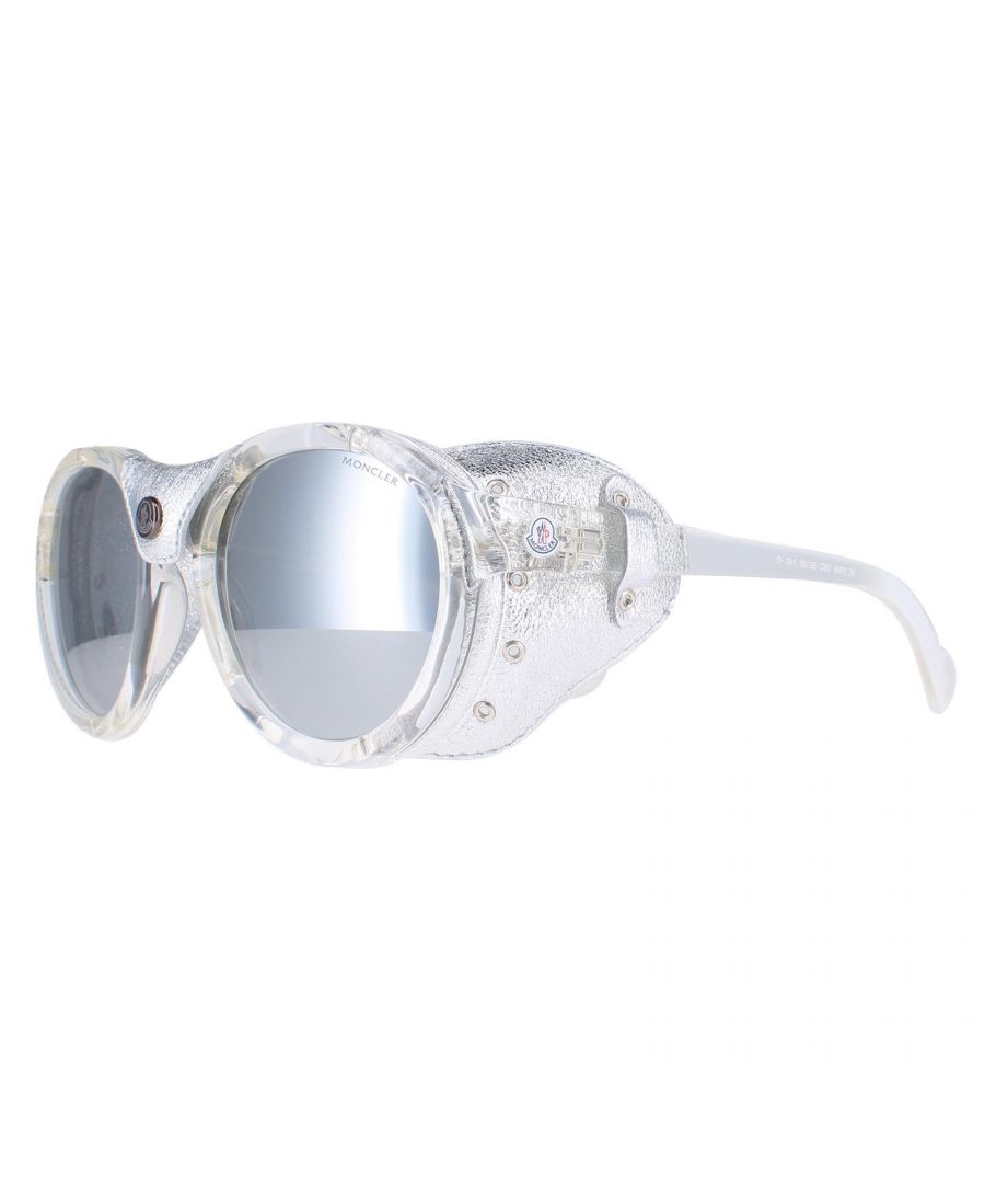 Moncler Round Unisex Crystal Silver Grey Silver Mirror ML0046 Sunglasses are a round style crafted f...