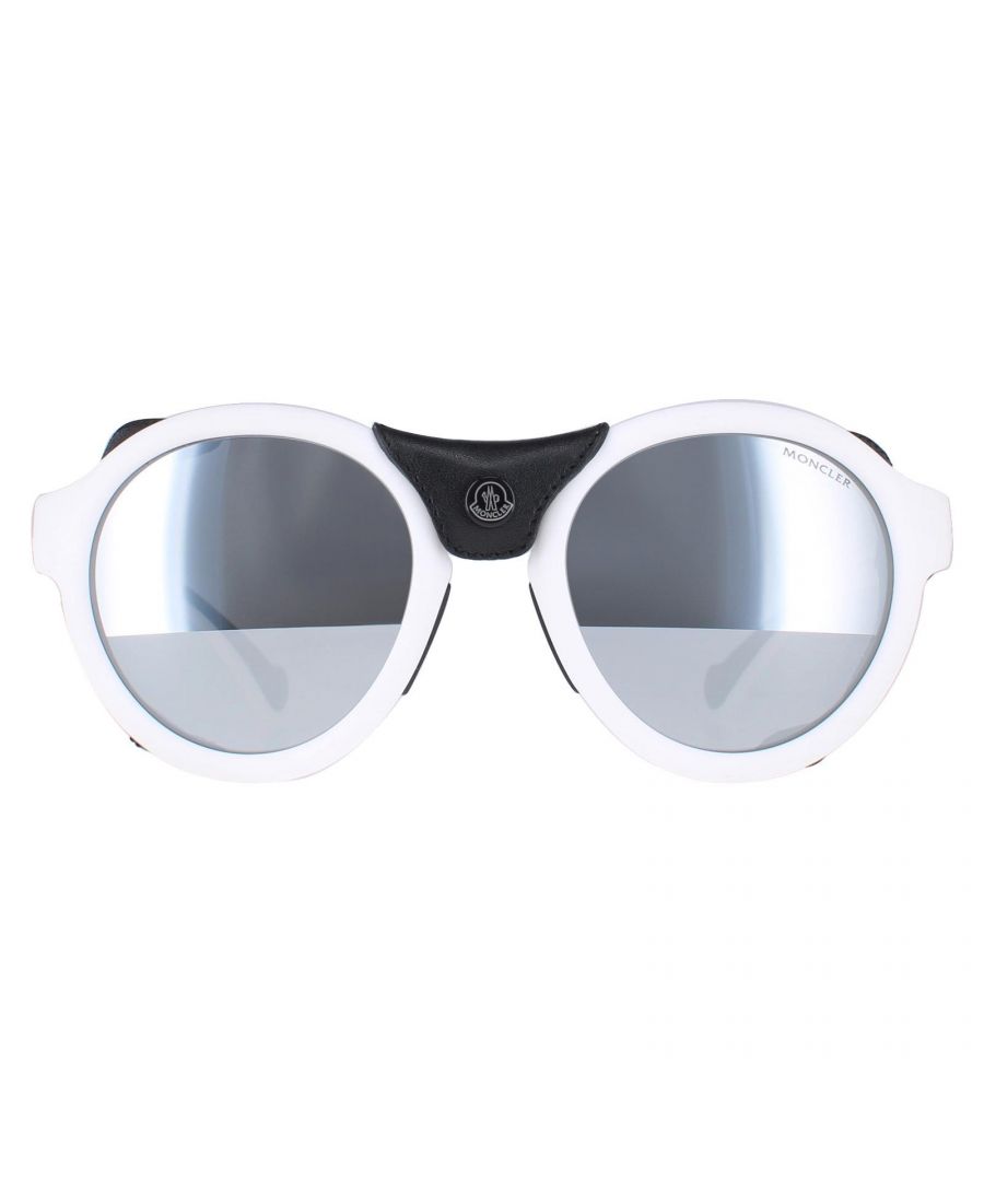 Moncler Round Unisex White Black Leather Grey Silver Mirror ML0046 ...