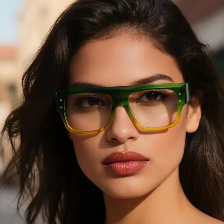 Custom Logo Flat Top Rivet Green Black Square Shades Oversized Tort...
