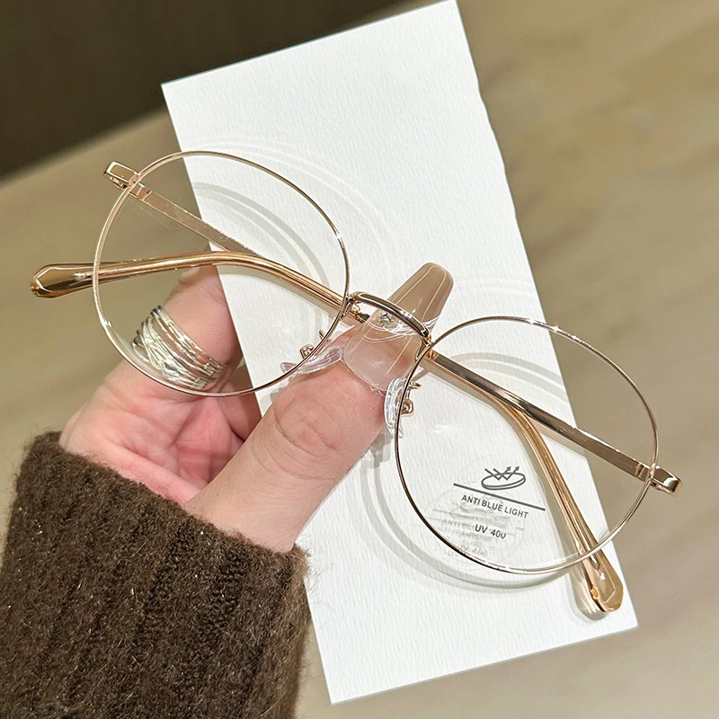 Literary Gold Wire Oval Small Frame Glasses Fashionable Myopia Glasses Frame Anti-blue Light Flat-li...