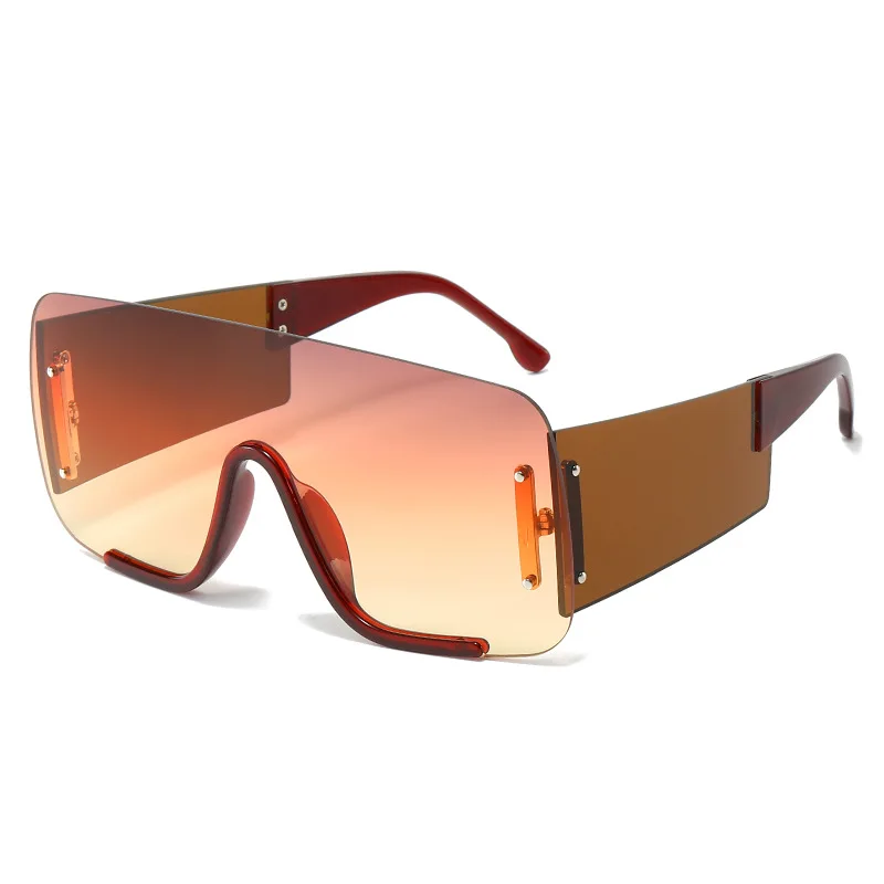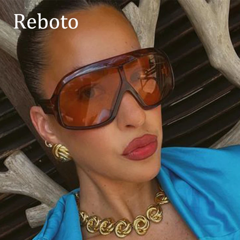 One Piece Oversized Pilot Sunglasses Women Fashion Flat Top Hip Hop Big Frame Sun Glasses Mask Googl...