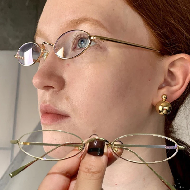 2024 Japanese Harajuku Metal Oval Glasses Gold Silver Metal Square Glasses Vision Care Anti-blue Eye...
