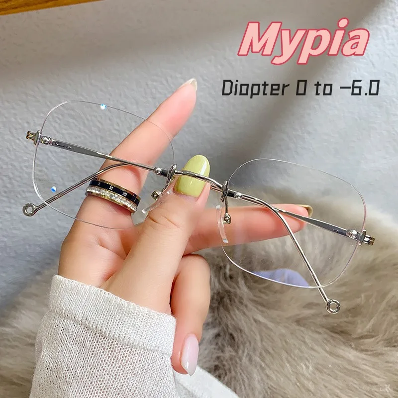 Luxury Brand Anti-blue Light Rimless Myopia Glasses Women Men Eyegl...