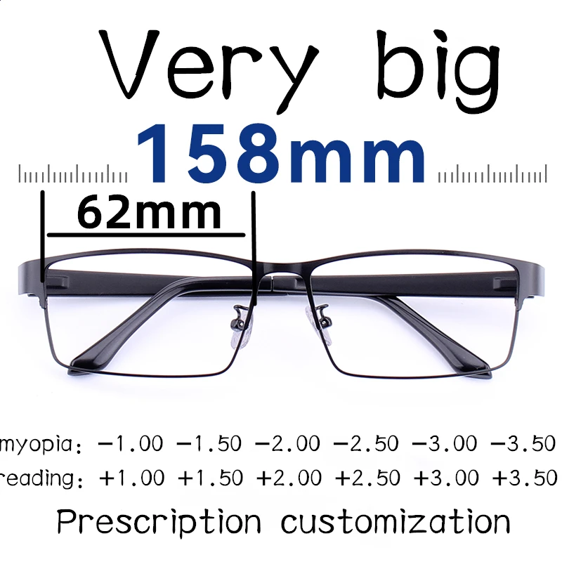 62MM Business Oversized Eyewear Frame Super Large Optical full frame glasses Big Head Metal Big Size...
