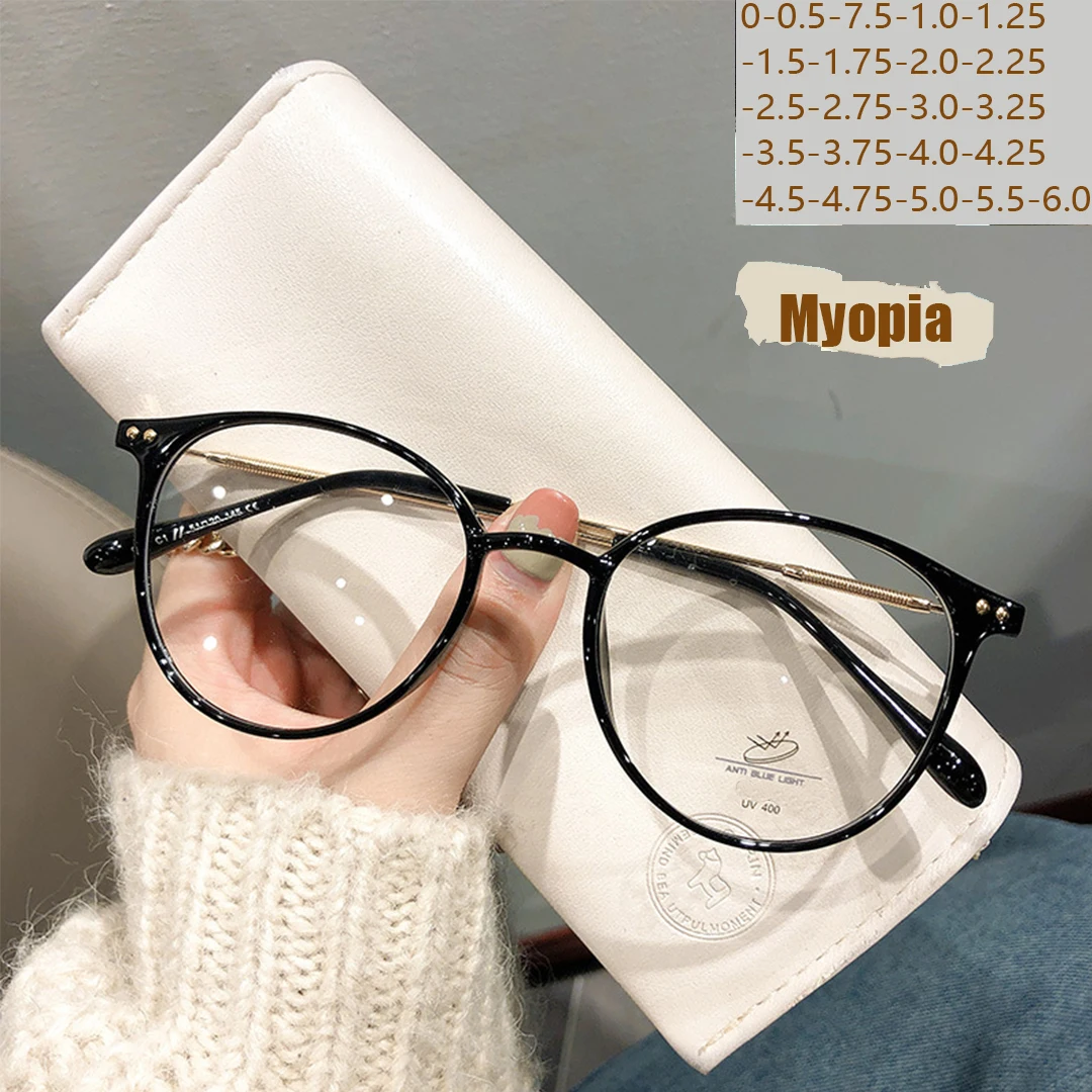 Round Frame Glasses For Myopia Women With Blue Light Ultra-light Internet Celebrity Without Makeup S...