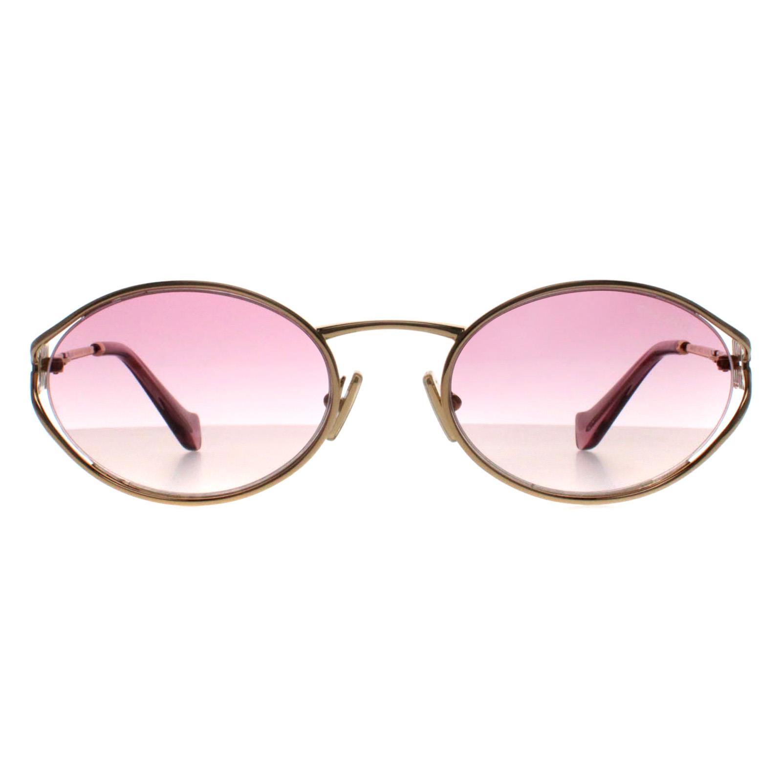 Miu Miu Oval Womens Pale Gold Pink MU52AS Sunglasses features a sleek oval silhouette crafted from l...