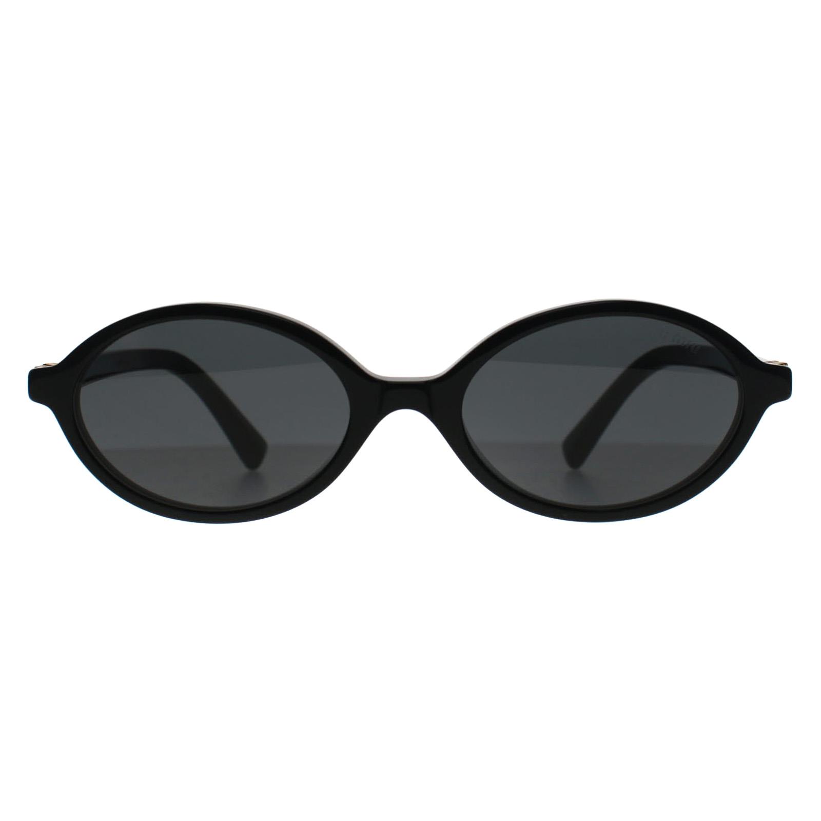 Miu Miu Oval Womens Black Dark Grey MU04ZS Sunglasses present a refined oval silhouette that merges ...