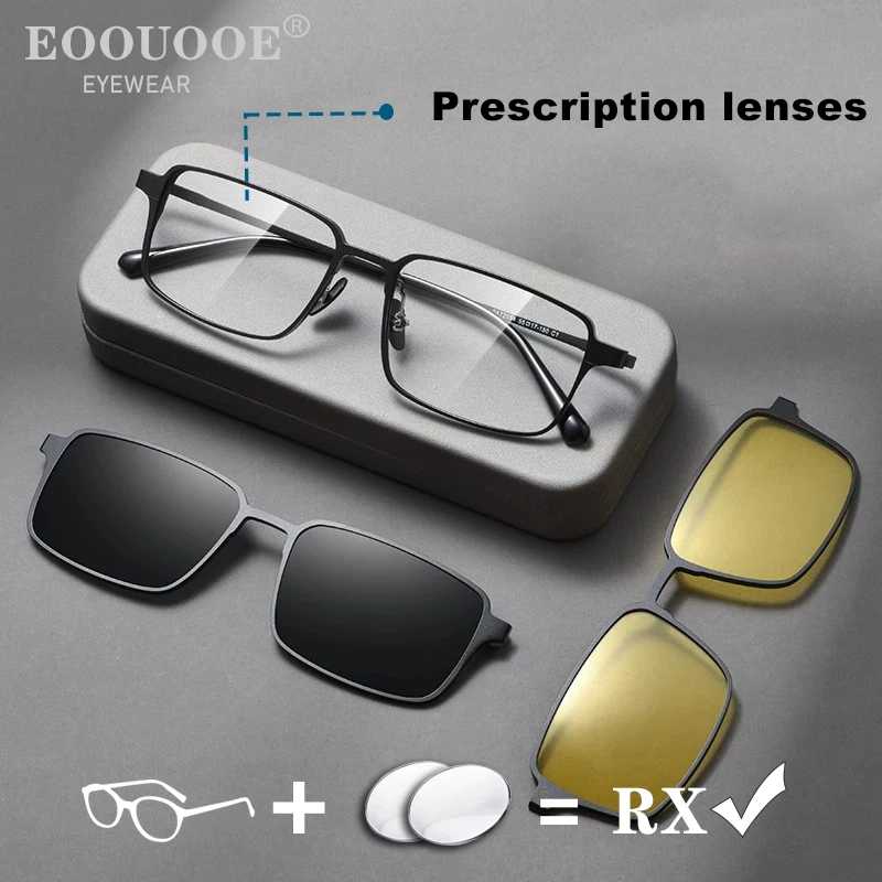 Night Vision Goggles Magnetic Clip Sunglasses Pure Titanium Eyeglass Men Optical Prescription Lenses...